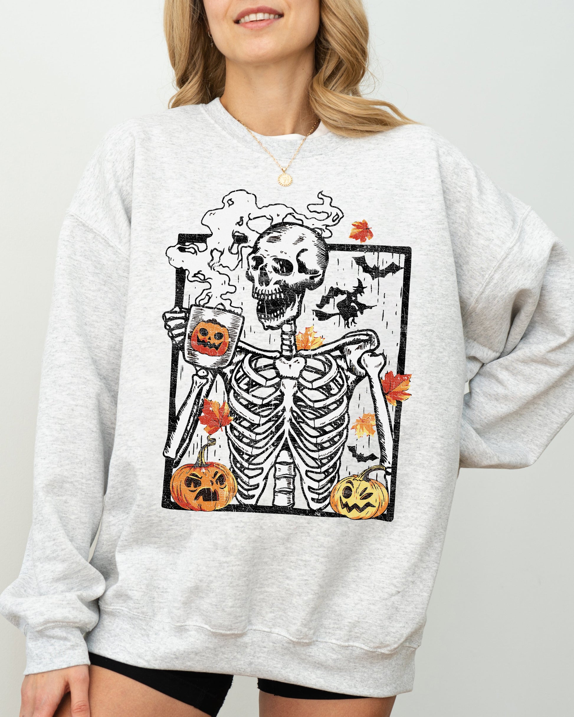 Skeleton Coffee, Pumpkin, Witch, Aesthetic, Funny, Meme, Halloween, Spooky, Costume Sweatshirt