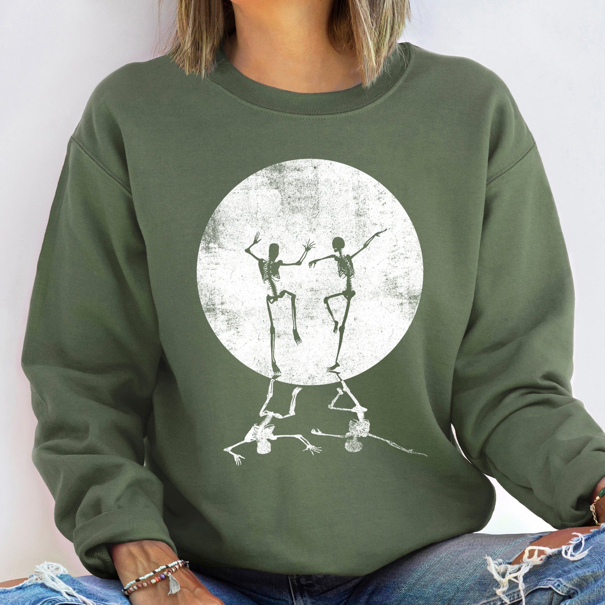 Halloween sweatshirt skeleton sweatshirt fleece sweatshirt cotton blend unisex sweatshirt skeleton dancing moon sweatshirt Halloween sweatshirt with fleece unisex Halloween sweatshirt cotton polyester blend sweatshirt Halloween casual sweatshirt