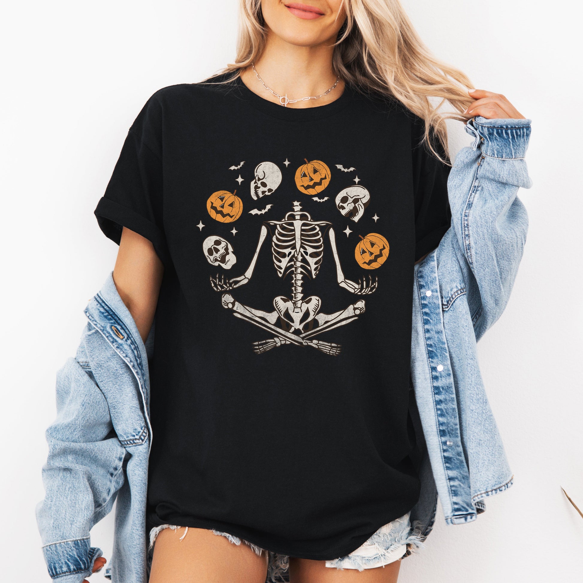 Halloween tshirt skeleton tshirt jack-o-lantern shirt party shirt festival tshirt skeleton dancing Halloween tshirt jack-o-lantern juggling tshirt comfortable breathable Halloween shirt festive casual Halloween apparel machine washable party tshirt