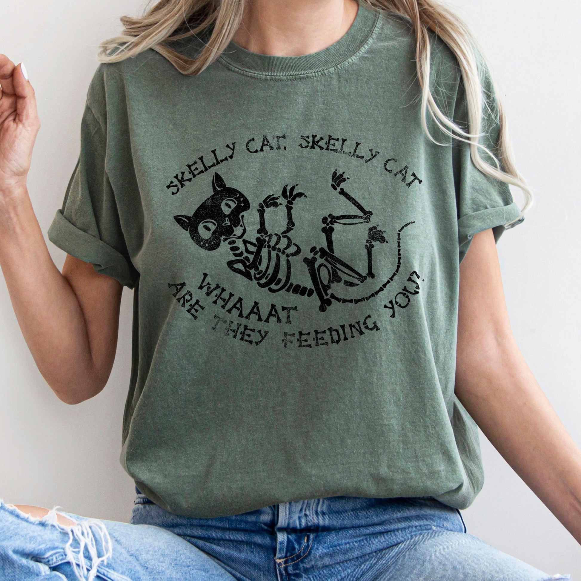 halloween shirt retro tee comfort colors graphic tee retro halloween comfort colors tee skelly cat halloween shirt vintage style halloween t-shirt unisex halloween graphic tee eco-friendly halloween tshirt ring spun cotton halloween shirt