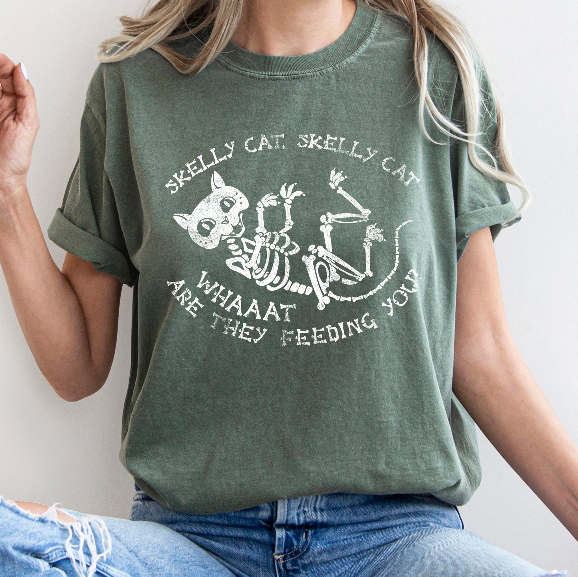 Skelly Cat Retro Halloween Comfort Colors Tshirt