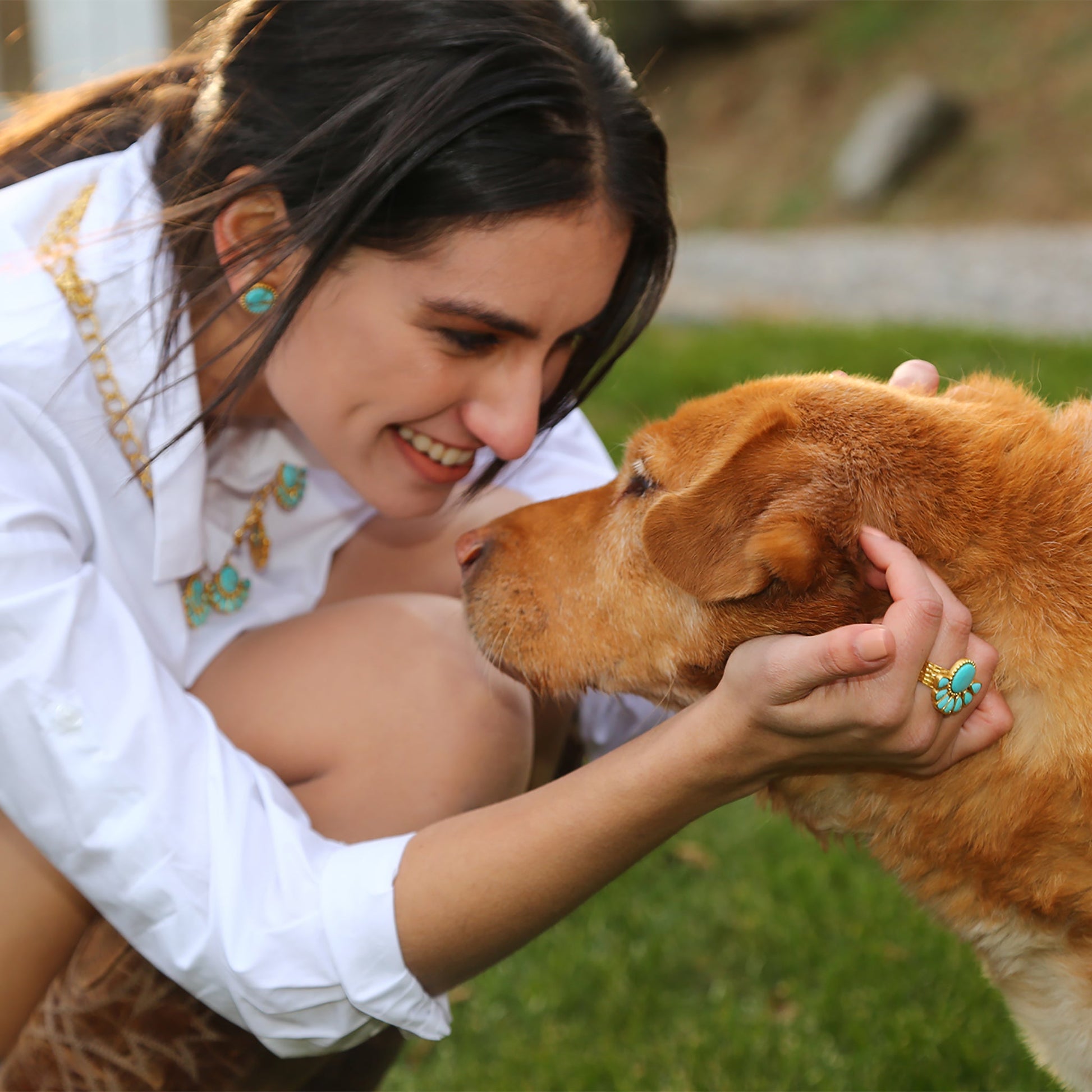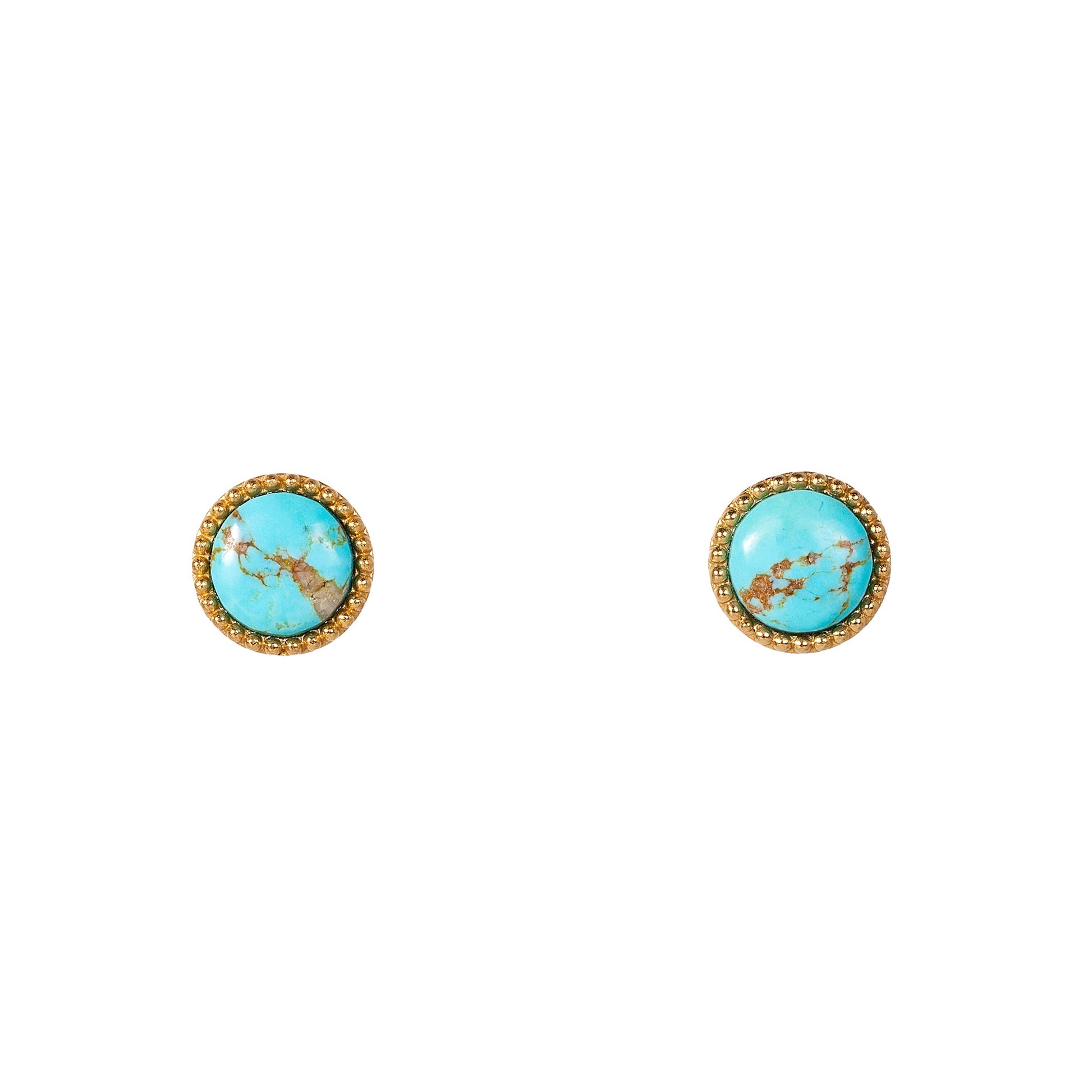 Sometimes the sweetest things are the simplest and that's never been more true than with the Southwestern Stud Earrings. These stud earrings are the perfect everyday wear featuring round turquoise stones set into 18K gold-plated, nickel-free brass. Sleek and small, these hypoallergenic, turquoise earrings are light and easy. Style them alone or pair them with our Western Blues Cuff for a matching pop.