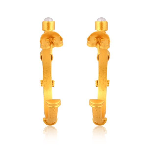 Inspired where the sand meets the sea, the Sparkling Shore Pearl Hoop Earrings will elevate any look. These hoop earrings feature textured 18K gold-plated, nickel-free brass with pearls in elevated settings. Textured nodules in between the pearl settings add contrast to these hoops. Whether worn with a casual outfit or dressed up for a night out, these pearl earrings pair effortlessly with the Ray of Light Cuff and our Stay Golden Necklace.