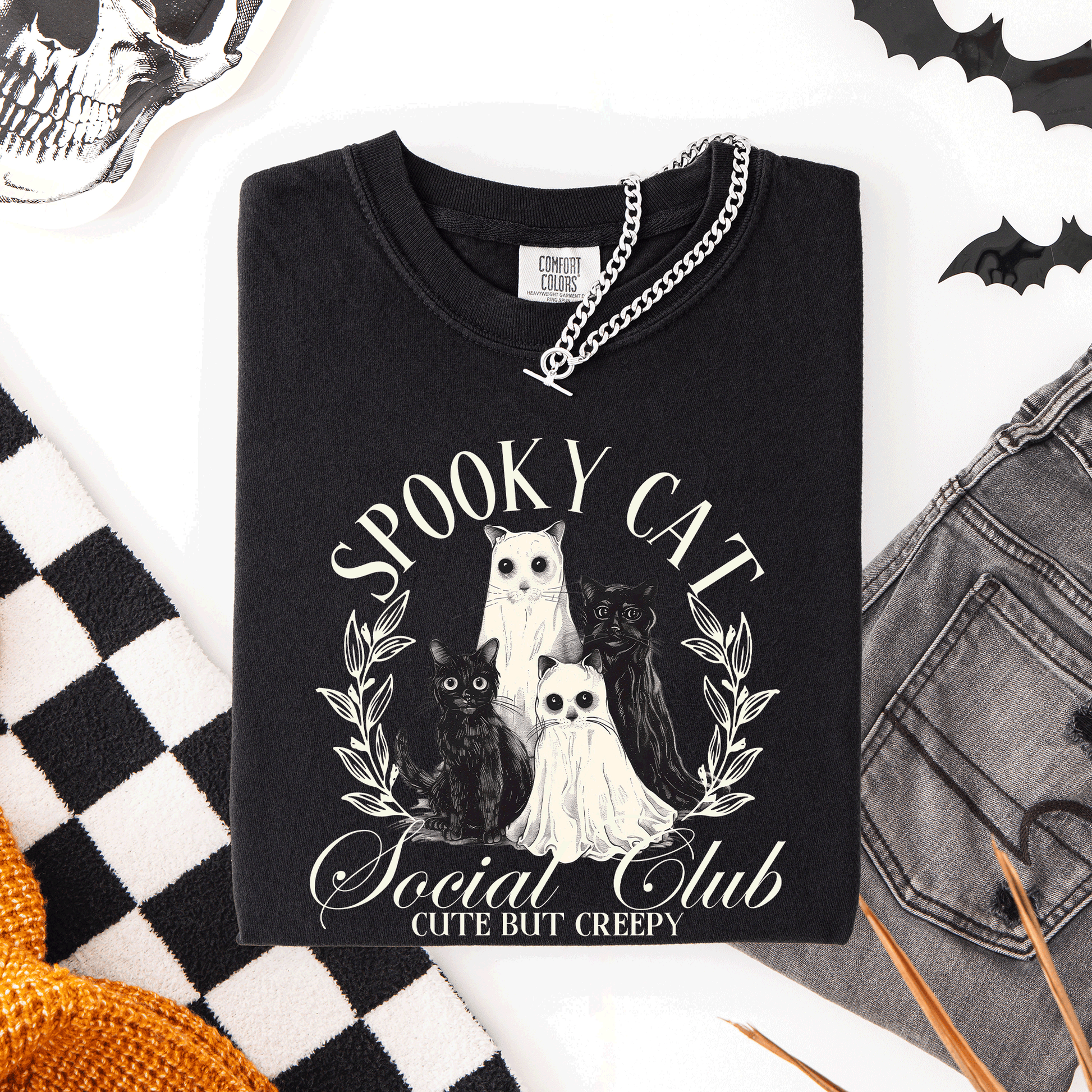 Spooky Cat Social Club, Cute, Halloween, Ghosts, Witch, Comfort Colors T-Shirt