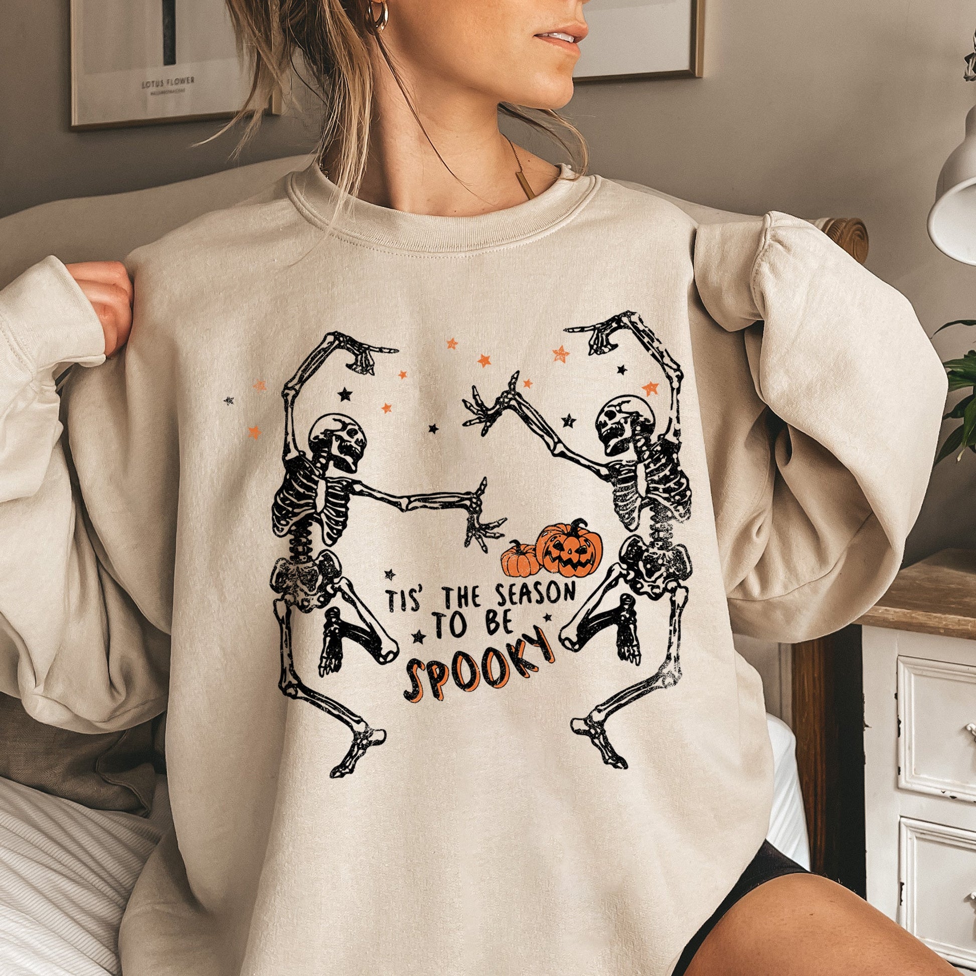 The Spooky Dance Halloween Sweatshirt pairs seamlessly with jeans for a laid-back, trendy vibe or can be layered over your favorite shirts for an added style dimension. Whether you're heading out for casual outings or enjoying cozy nights in, this sweatshirt is the perfect choice to celebrate the Halloween spirit in style.
