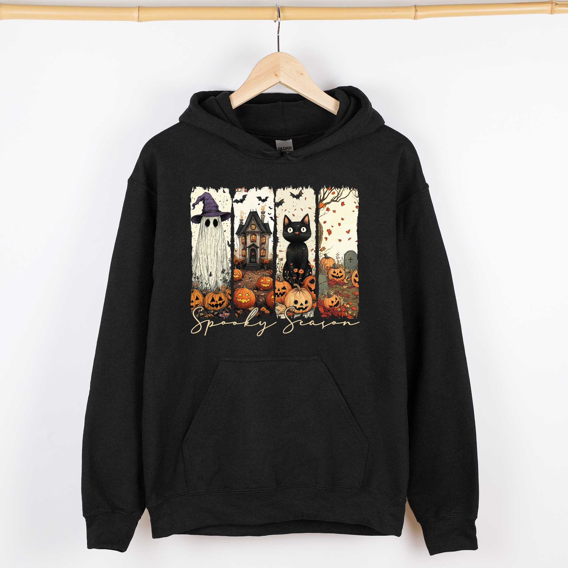 Spooky Season, Stripes, Halloween, Cat, Ghost, Pumpkins, Autumn, Fall, Graphic Hoodie, Hooded Sweatshirt