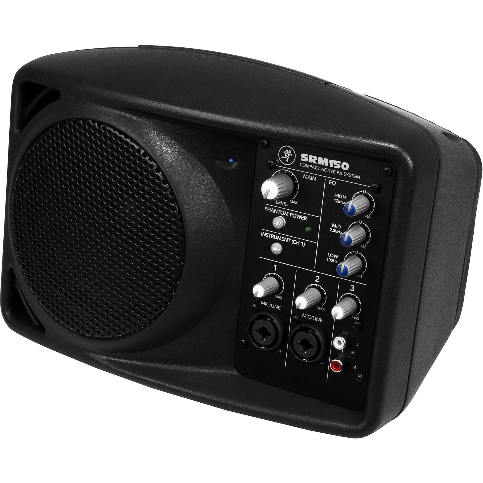 The SRM150 combines Mackie's proven mixer and SRM Active loudspeaker technologies to create a powerful, great-sounding 3-channel PA system that is ultra-compact, versatile and expandable. The Mackie SRM150 Compact Active PA System is ideal for a wide variety of applications ranging from boardroom A/V to live musical performance in coffee houses, piano bars, or rehearsals, just to name a few. You get portable, compact, and versatile sound reinforcement with the SRM150!