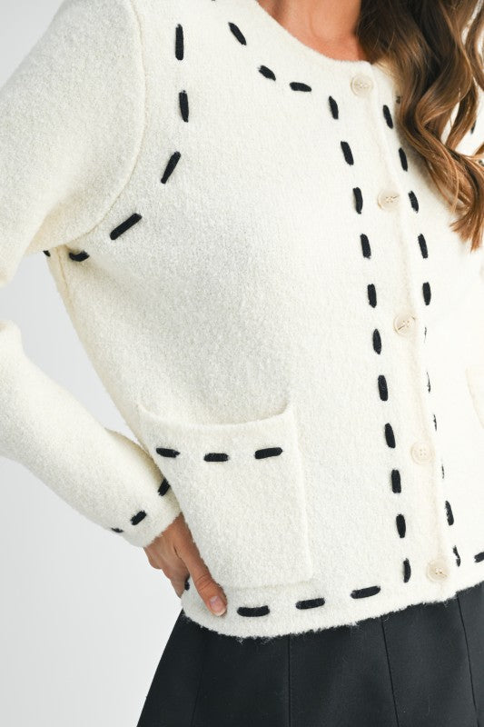 Cropped Boucle Cardigan with Stitched Detail