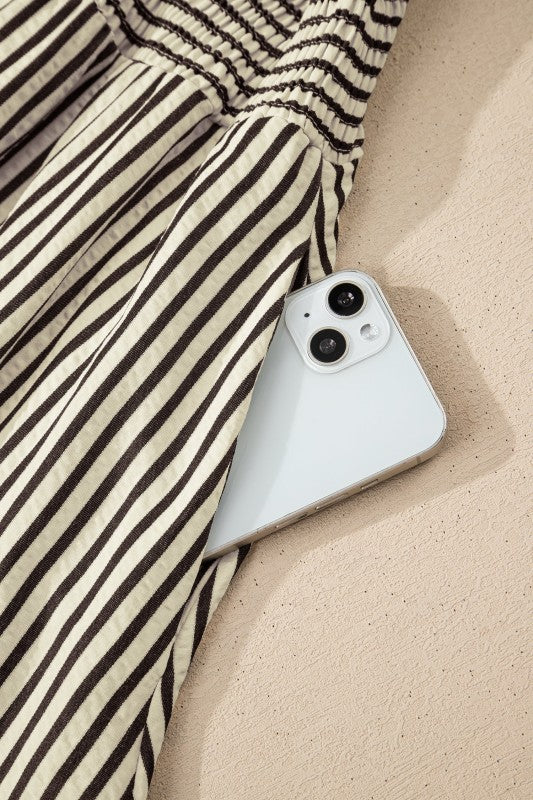 Stripe V-Neck Zip Front Midi Dress