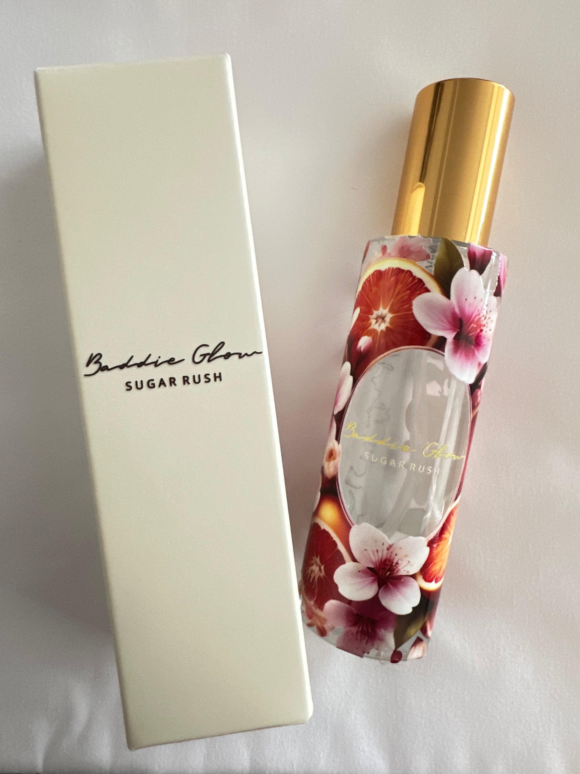 Indulge in a fragrant journey with Baddie Glows' enchanting "Sugar Rush" perfume, a luscious blend that delights the senses without the harshness of alcohol. This exquisite fragrance boasts a natural sugar base that envelops you in a sweet embrace, lasting an incredible 7+ hours when combined with well-moisturized skin.