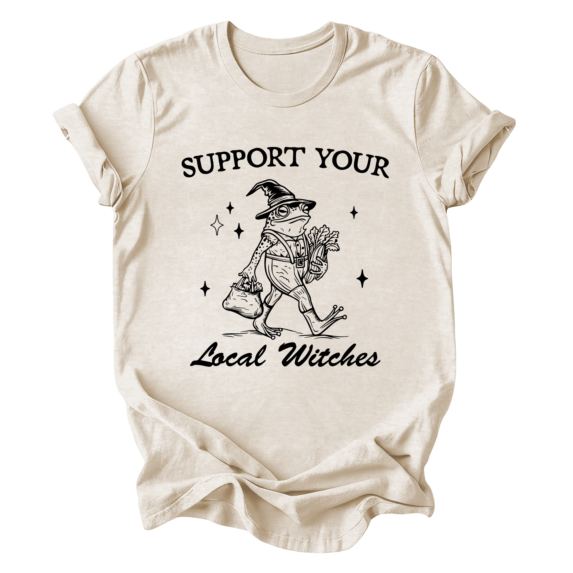 Celebrate the magic of Halloween with our Support Your Local Witches, Frog, Halloween, Witchy, Spooky T-shirt. This captivating black tee is more than just apparel; it's a tribute to the enchanting spirit of the season. Designed for those who appreciate the whimsical charm of all things witchy, this graphic T-shirt is perfect for any festive occasion.