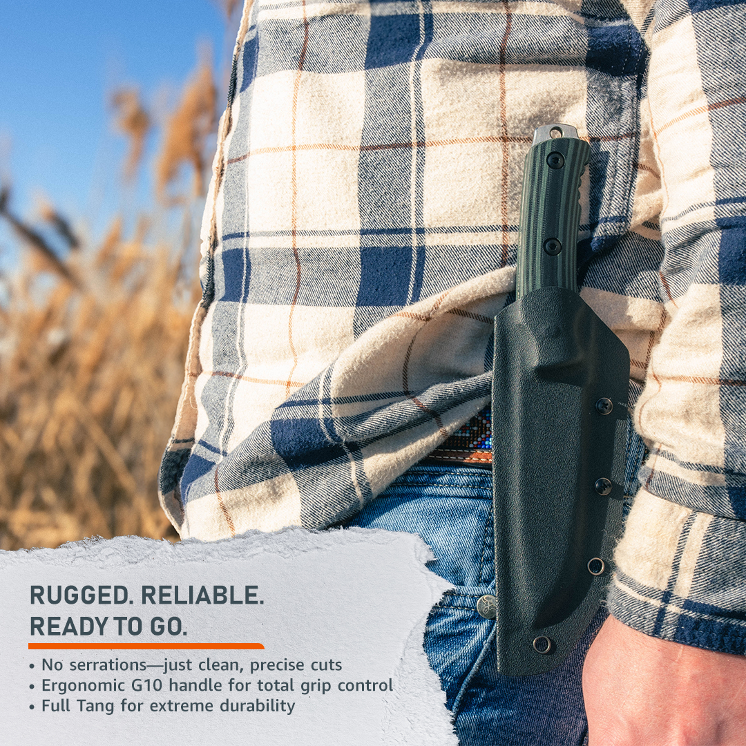 A tough, no-nonsense survival knife built for the wild. Crafted from heat-treated 9CR18MOV steel with a G10 handle, it’s made for cutting, carving, and fire-starting in the harshest conditions. Not for everyday carry—this is a serious tool for serious survival.
