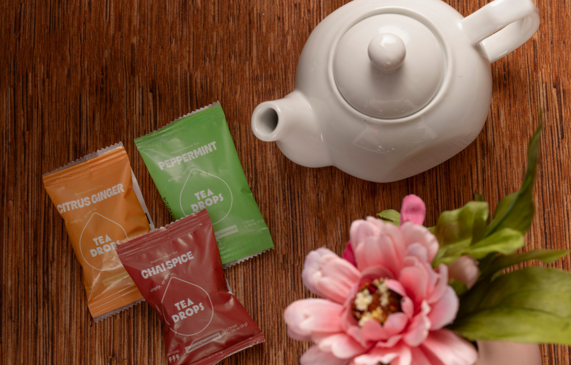 This charming little 10 ounce porcelain teapot, and three flavored Tea Drops® branded teas provide a sweet and soothing respite. *Tea Drop® flavors vary