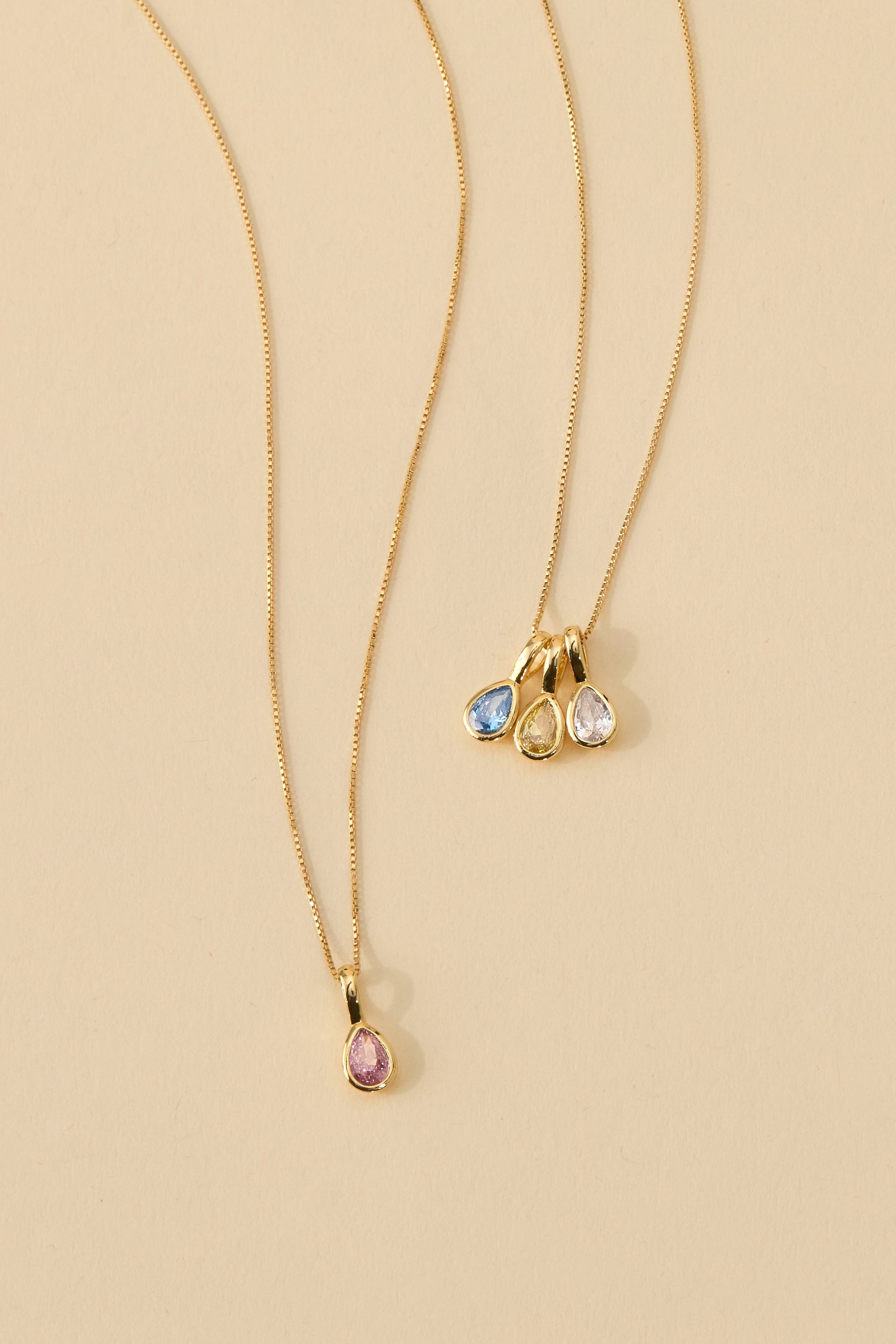 Teardrop Cubic Zirconia Birthstone Necklace 18k Gold Over Brass