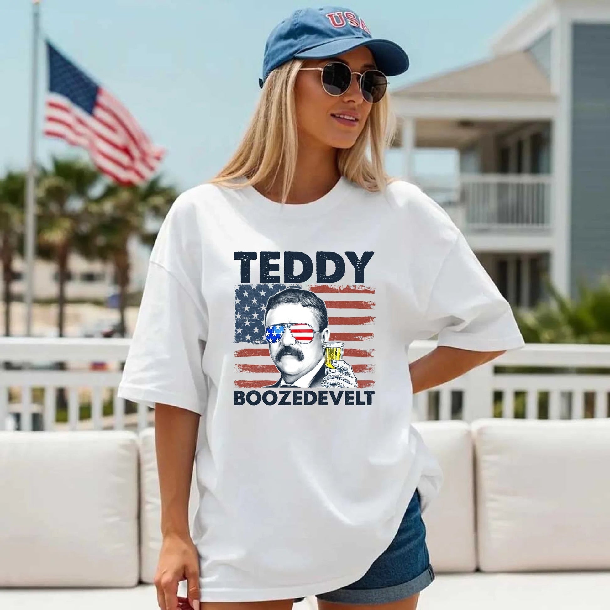 ⭐ Bring bold energy to the backyard BBQ with our Teddy Boozedevelt 4th of July Shirt — where history meets hilarity! ⭐