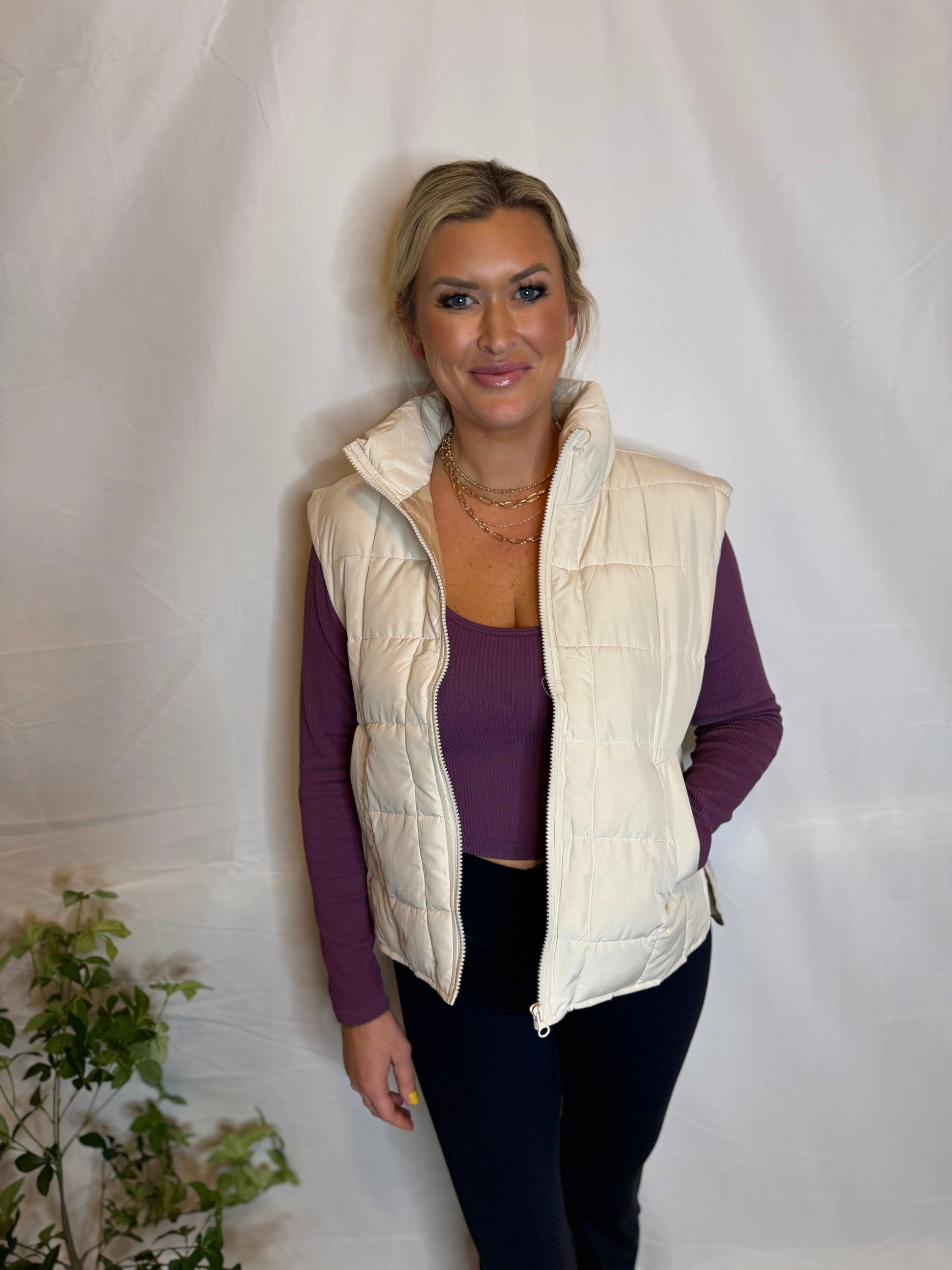 - Fitted crop design works well for layering with jackets or vests