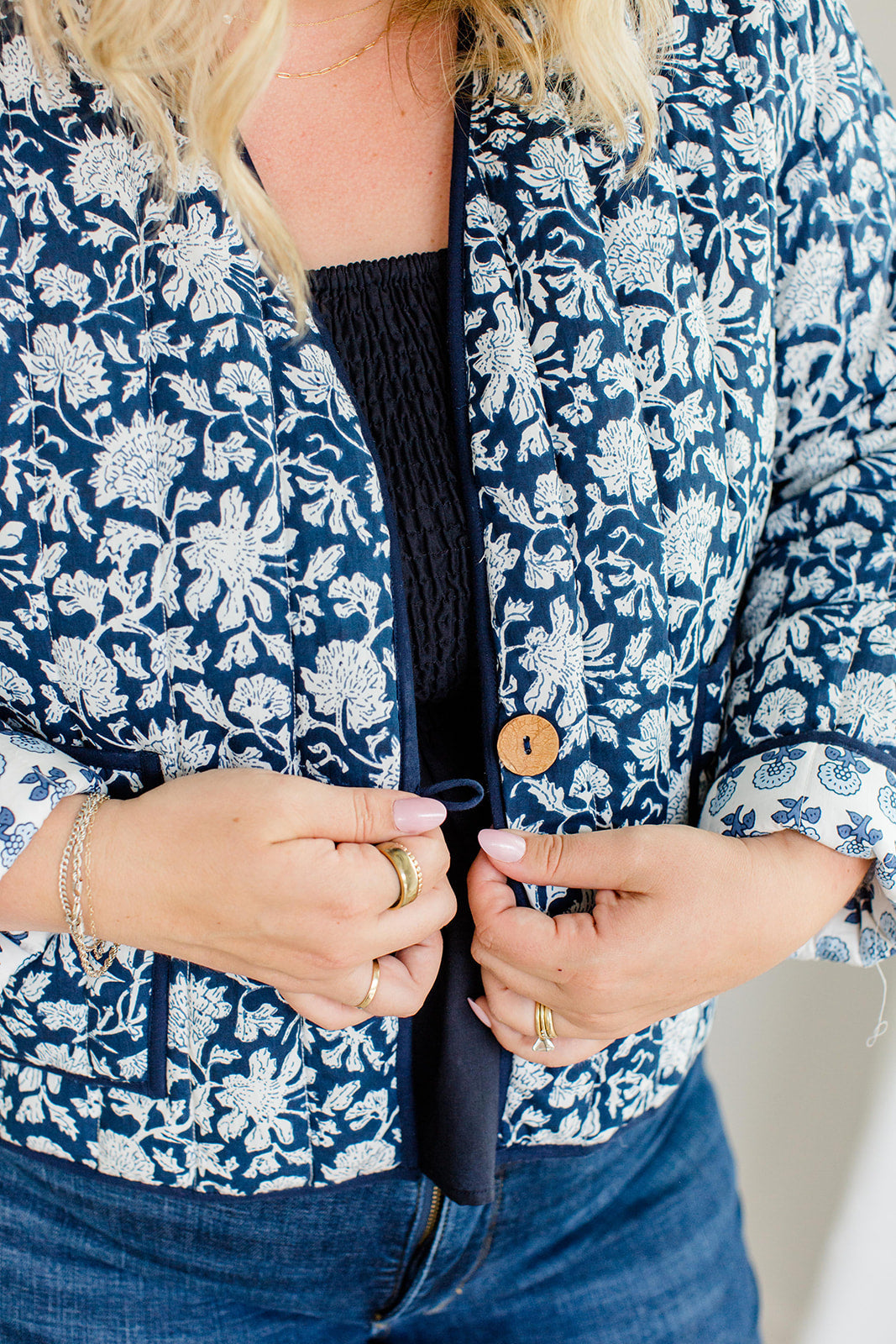 Reversible Quilted Jacket French Navy The Emily