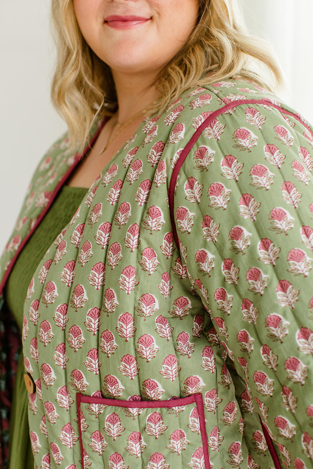 jacket reversible quilted cotton outerwear reversible quilted jacket pistachio pink jacket women's casual jacket button closure jacket lightweight cotton jacket