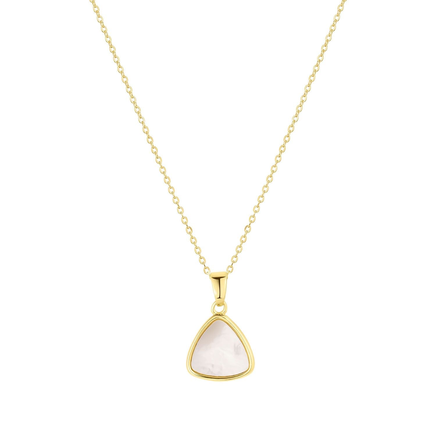 The Wren Necklace features a shell pearl pendant set in a gold over brass bezel hanging from a 14k gold filled chain. Designed for those seeking a delicate, elegant accessory suitable for everyday wear or special occasions. The 16-inch chain includes a spring ring clasp for secure fastening and easy wear.