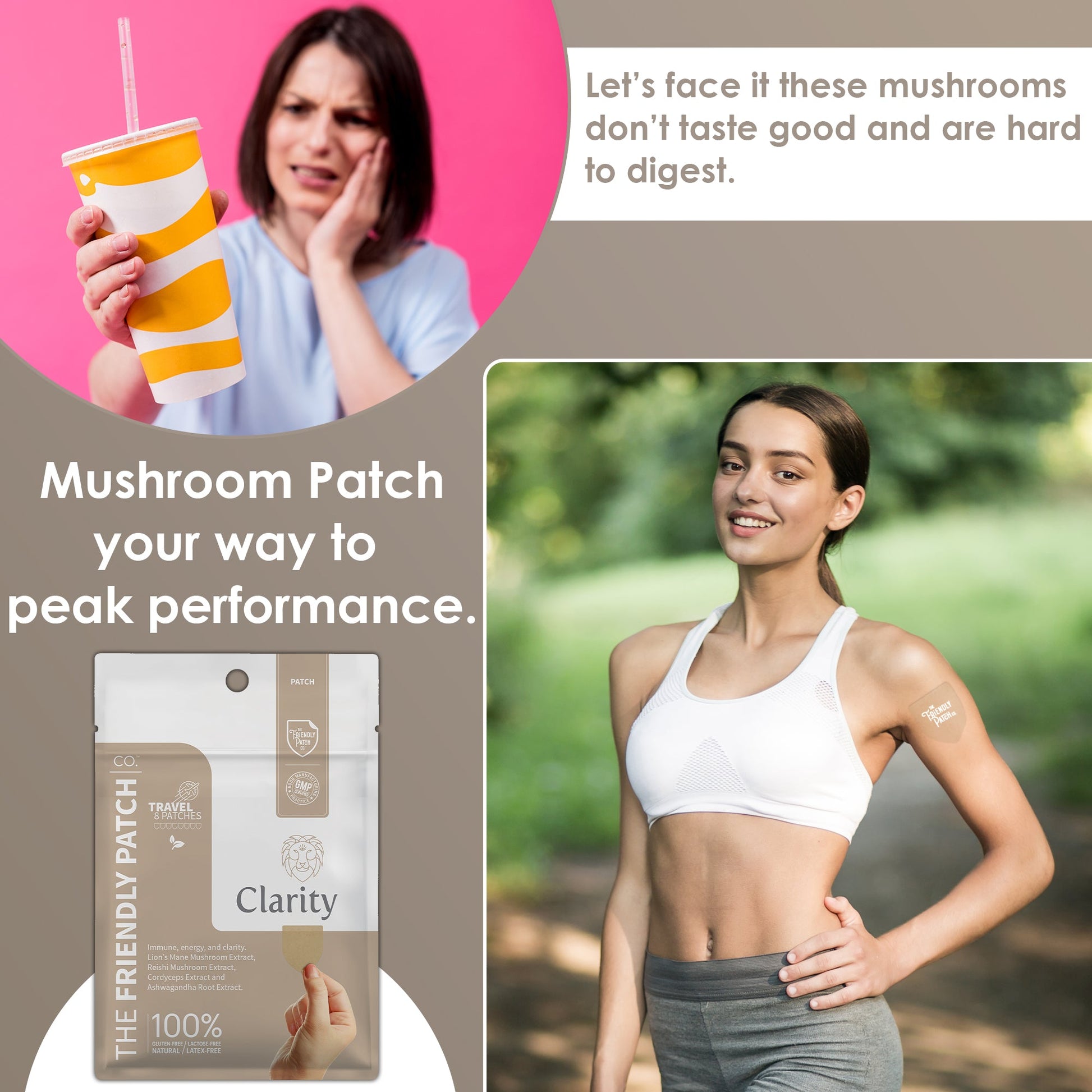 The Friendly Patch Clarity Mushroom Patches are your gateway to wellness, mental clarity, and overall well-being. Crafted with Plant-Powered goodness, these patches are designed to support your insight and clarity throughout the day. They offer a holistic approach to health as a convenient and innovative solution. Delve into the fantastic world of these Clarity Mushroom Patches. Let's face it: these mushrooms don’t taste good, so you no longer need to disguise the taste and upset the gut. Put a patch on and let the goodness of the patch do the rest.