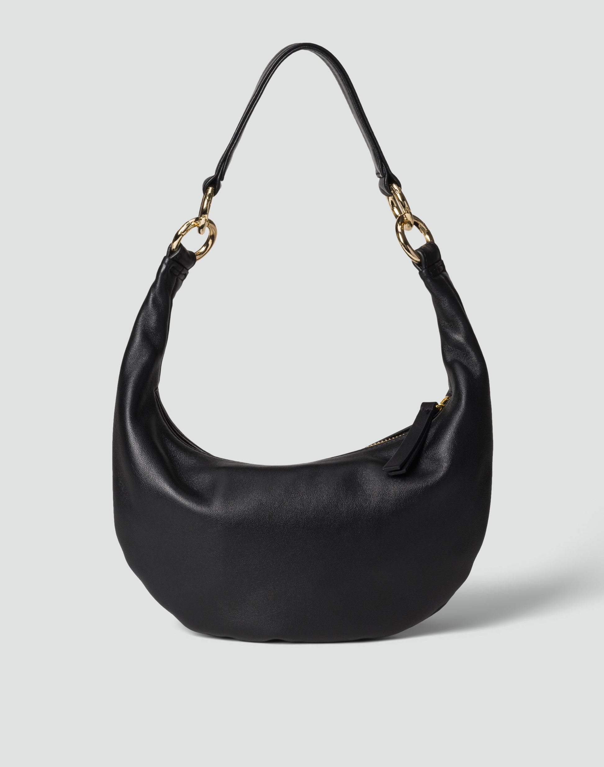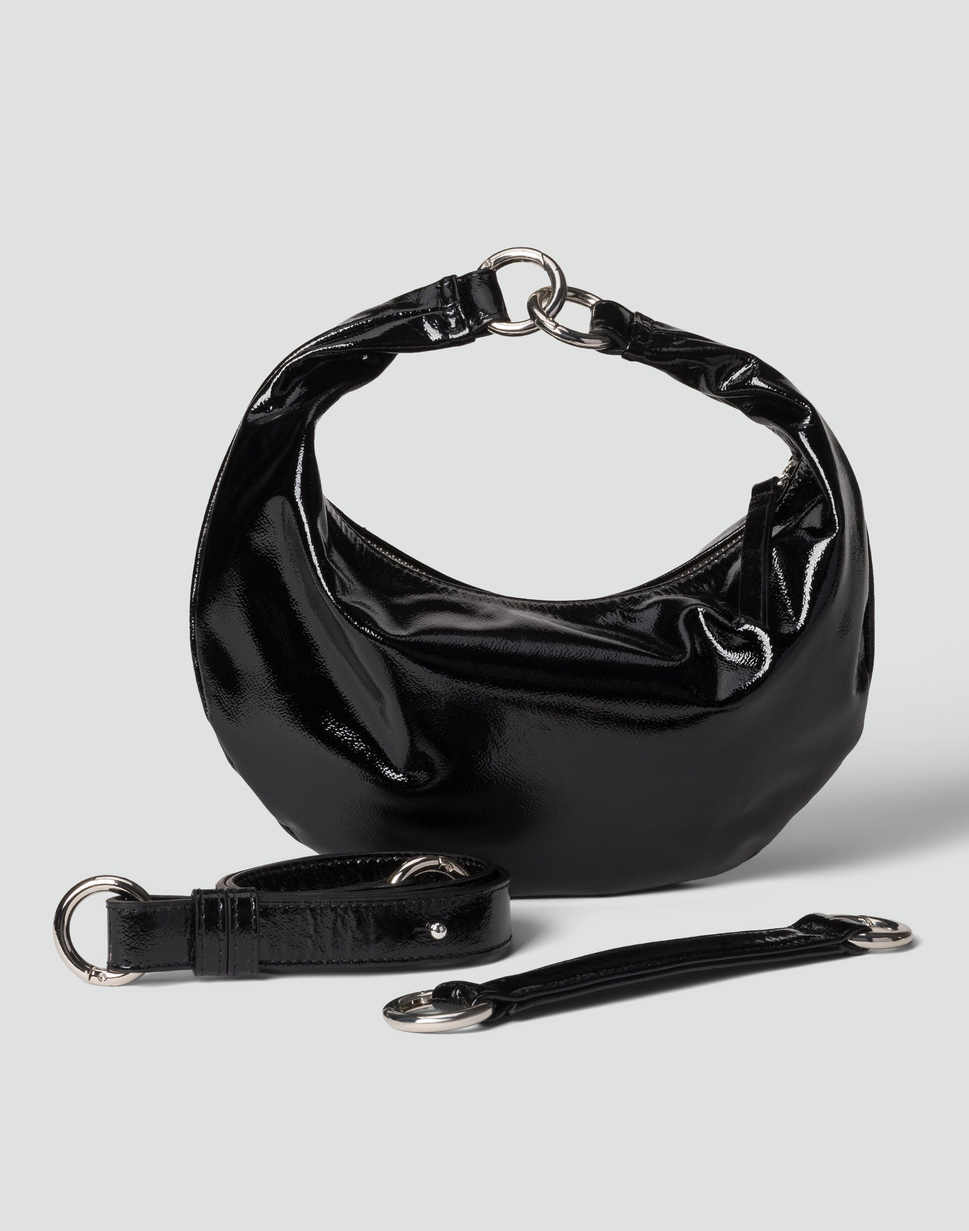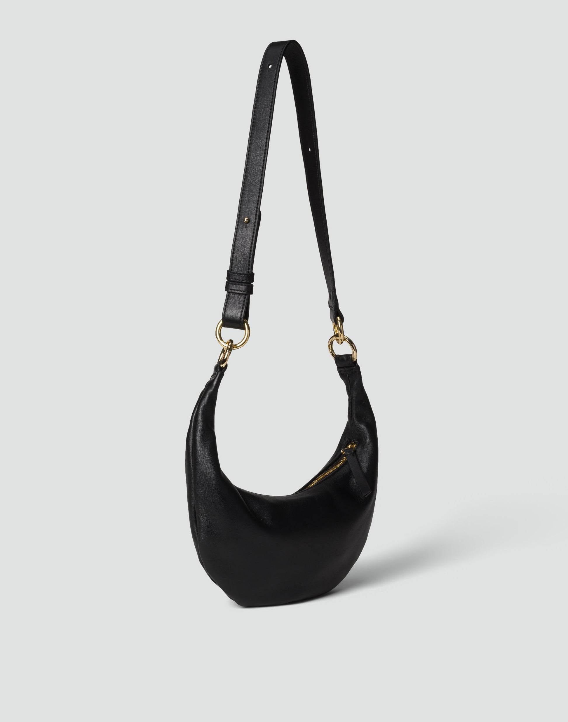 Crafted in the hills of Italy, the Micro Ring Bag is everything you love about our best-selling everyday Ring Bag, made into a mini size. Fitting a phone, camera, keys, gloss and everything you need for a trip or a night out, the Micro Ring can be worn 4 different ways. Featuring a unique click-ring mechanism and two adjustable straps, you can effortlessly switch from a chic handheld hobo to wristlet to a curved shoulder bag or a crossbody crescent bag with a quick click.