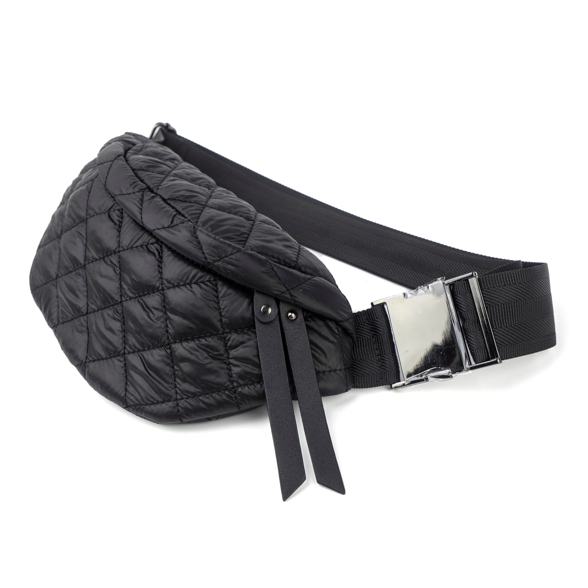 The Millie Puffer Sling Bag by Babs+Birdie is a lightweight crossbody bag designed for hands-free use at festivals, travel, or daily outings. It features a fully lined interior with an orange lining and includes one internal zippered pocket along with a slip pocket for organizing small items. The bag can be worn across the body as a sling bag or around the waist as a belt bag or fanny pack, providing flexible and secure ways to carry valuables.