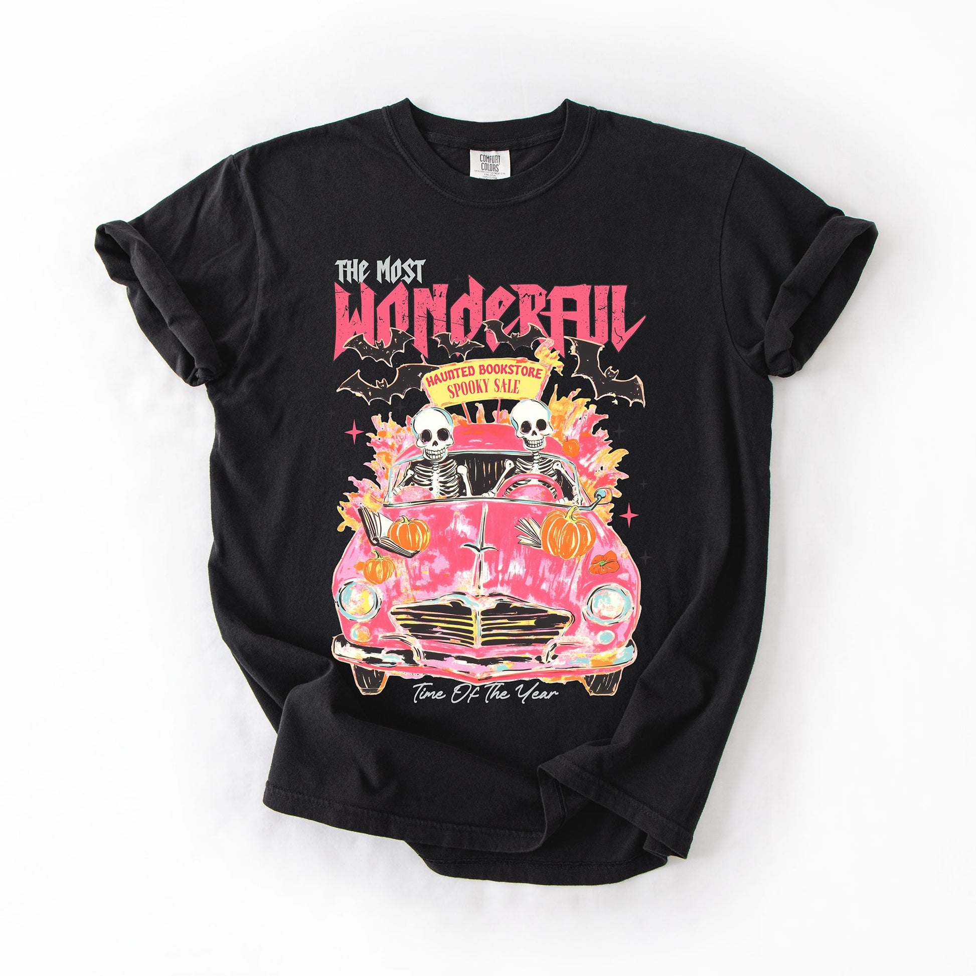 The Most Wonderful Time Of The Year, Reading Skeletons, Pink, Spooky, Halloween, Trending Graphic Tee, Comfort Colors T-Shirt
