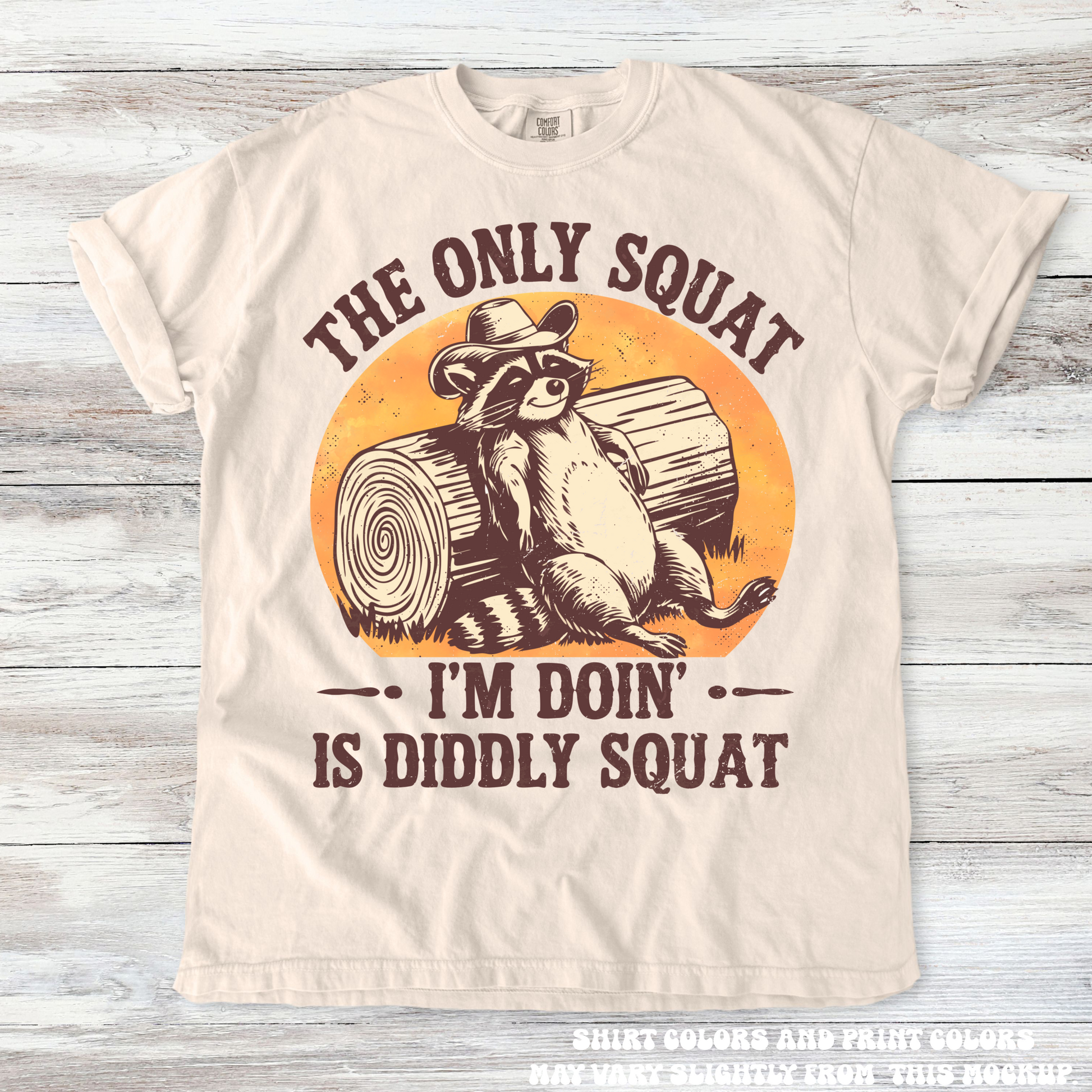 The Only Squat I'm Doing Is Diddley Squat Racoon Tee - Printed On Comfort Colors