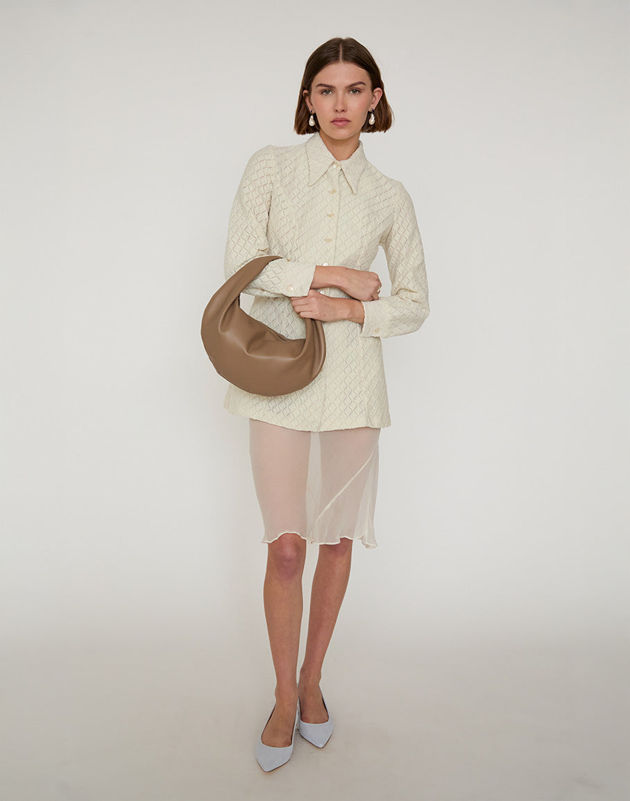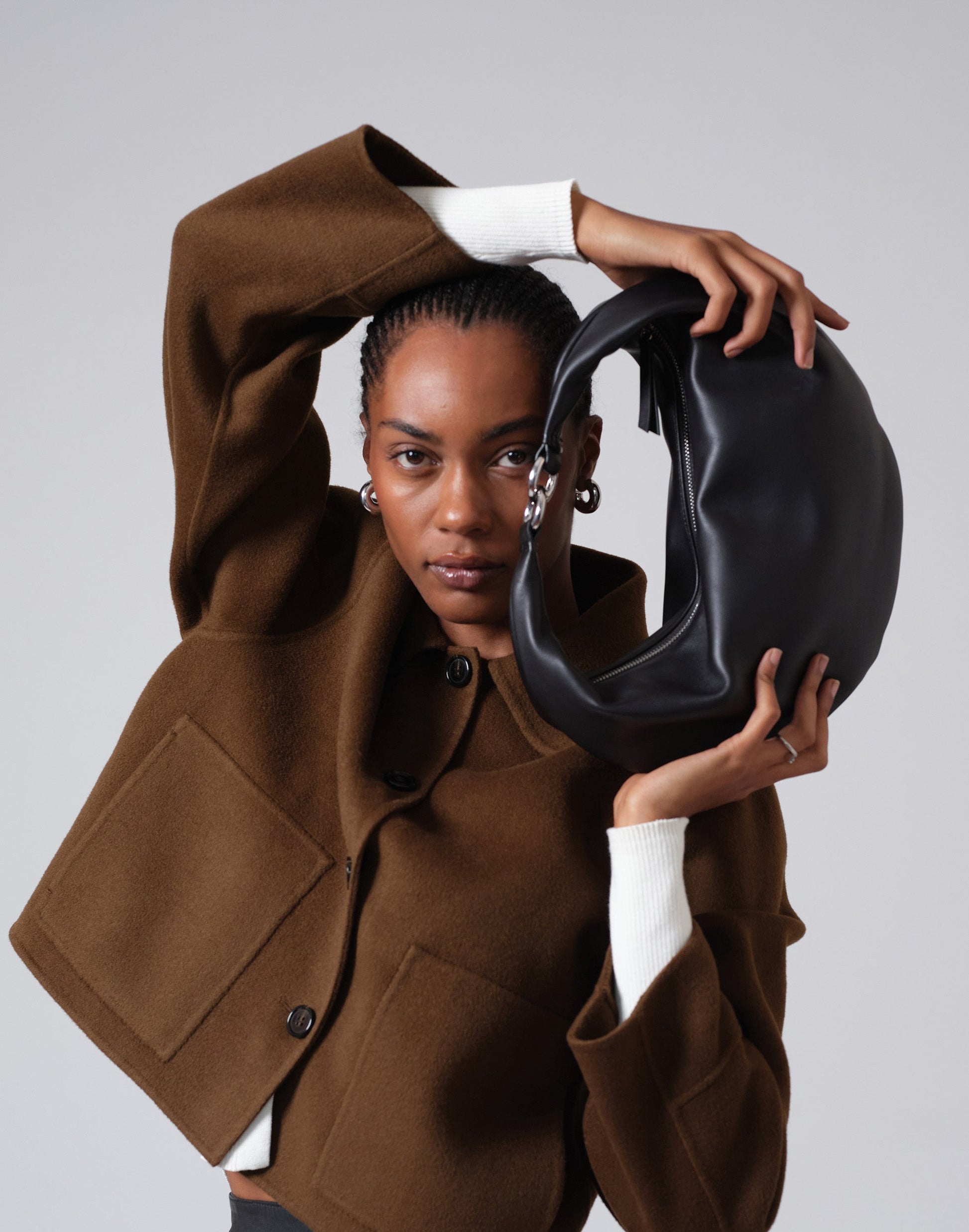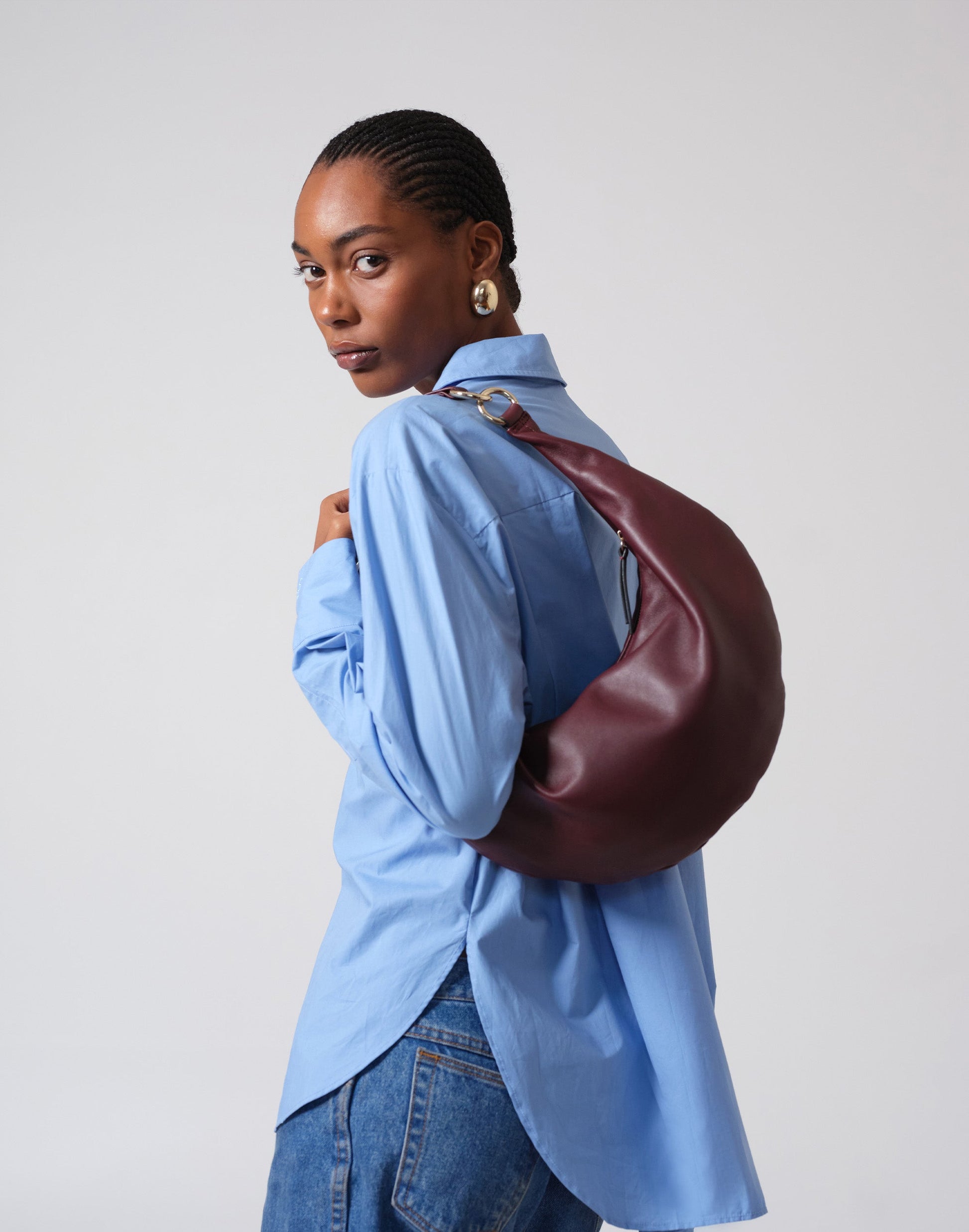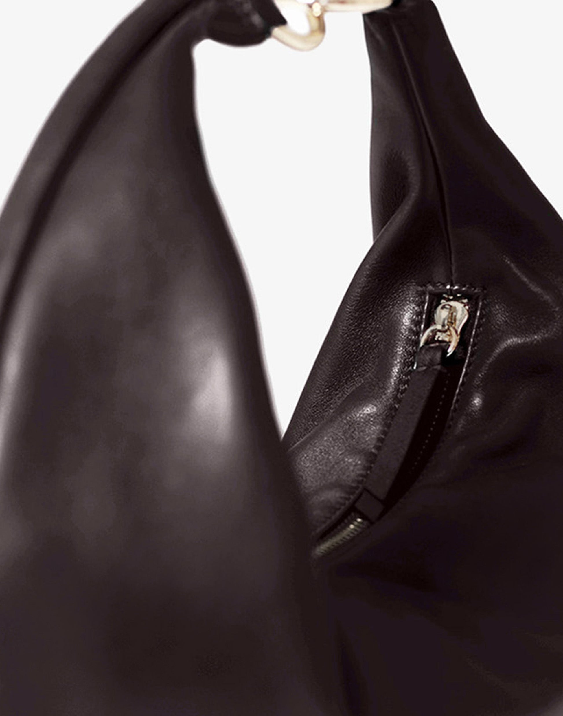 Crafted in the hills of Italy, the Ring Bag seamlessly blends innovative design with timeless elegance and a commitment to sustainability. It's 3-in-1 bag design features a unique click-ring mechanism and two adjustable straps, so you can effortlessly switch from a chic handheld hobo to a curved shoulder bag or a crossbody crescent bag with a quick click. Plus, stay organized with two interior zip pockets.