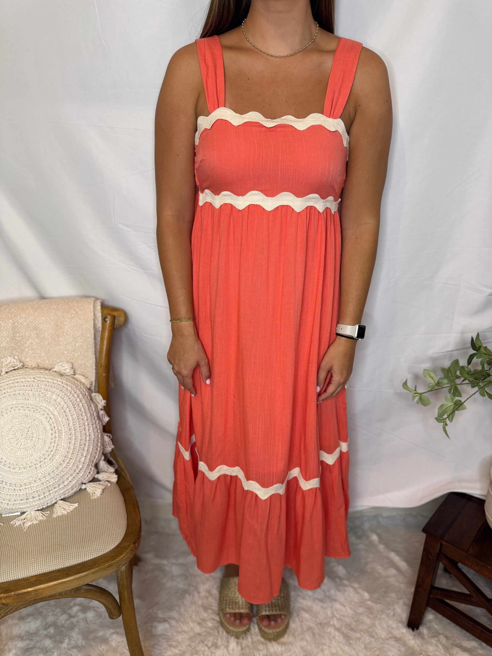 Wavy Trim Adjustable Strap Midi Dress Sweet Jude Boutique