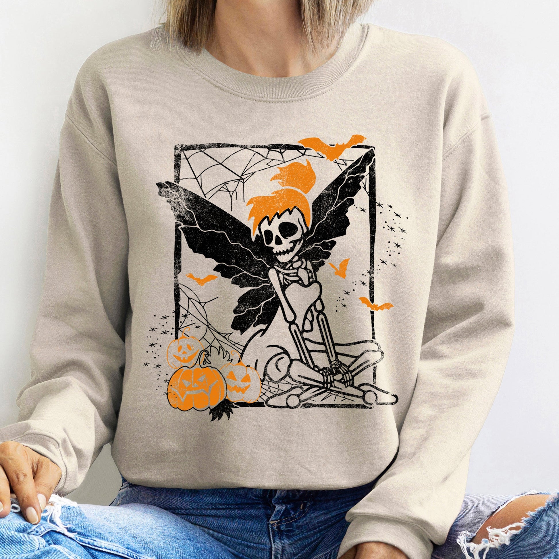 The Tinkerbell Skeleton Halloween Sweatshirt pairs effortlessly with jeans for a relaxed look, or can be layered over shirts for a trendy style. It's perfect for both casual outings and cozy nights in, making it a versatile addition to your fall wardrobe.