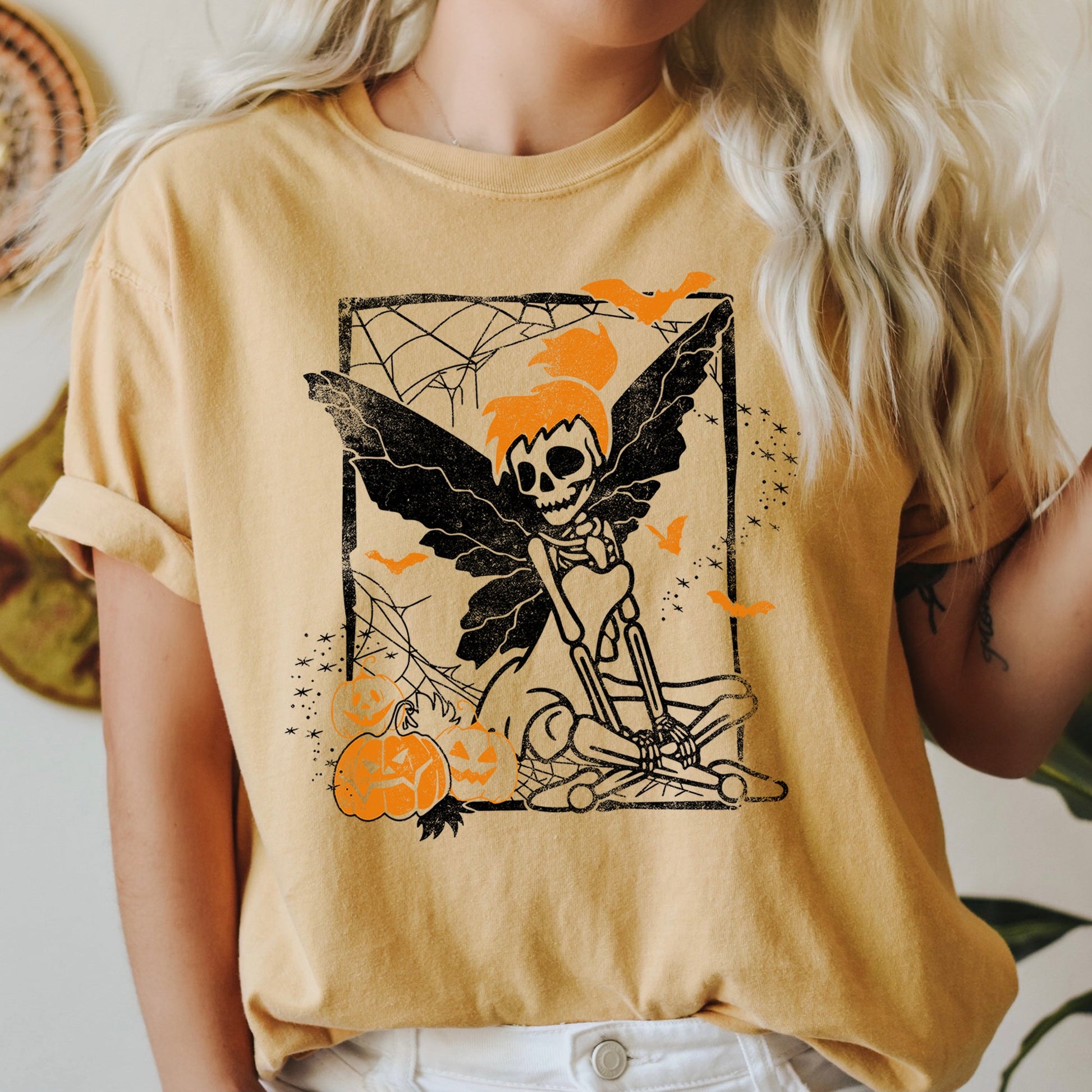 Tinkerbell Skeleton Retro Halloween Comfort Colors Tshirt
