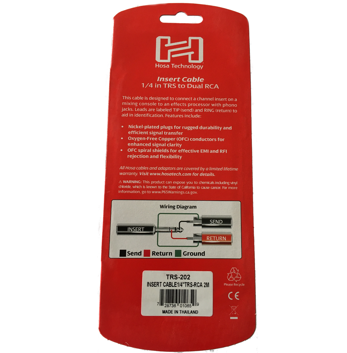 New - Hosa TRS-202 Channel Insert Mixer Cable 1/4" in TRS to Dual RCA 2m 6.6 ft