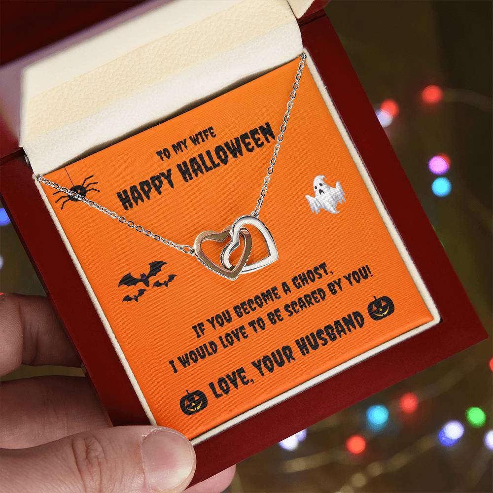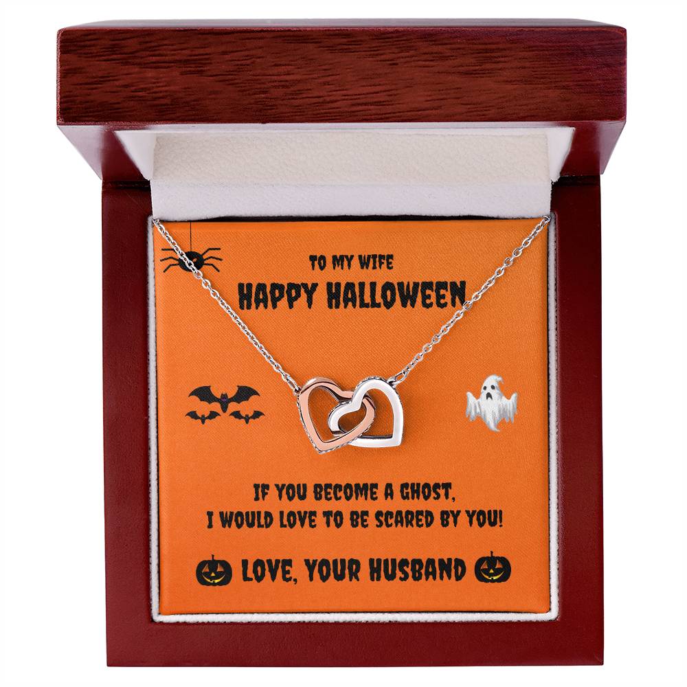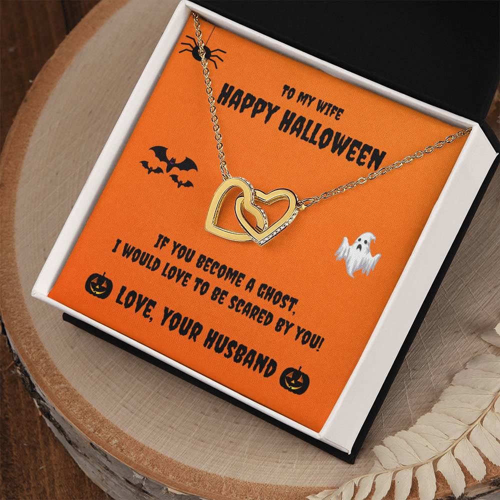 Two Hearts Necklace - Happy Halloween - To My Wife Cubic Zirconia Interlocking Hearts Necklace