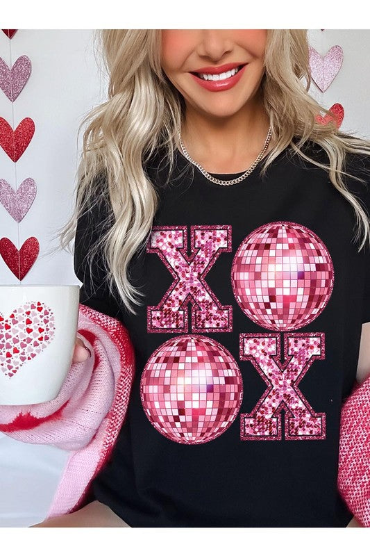 XOXO FAUX SEQUIN,DISCO BALL,VALENTINES DAY UNISEX SHORT SLEEVE,GRAPHIC TEE,GRAPHIC TSHIRTS,TSHIRTS,TEES