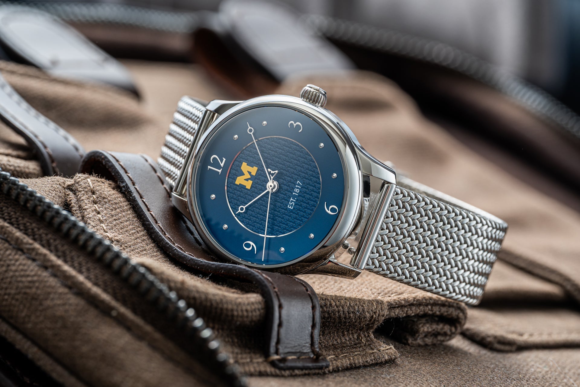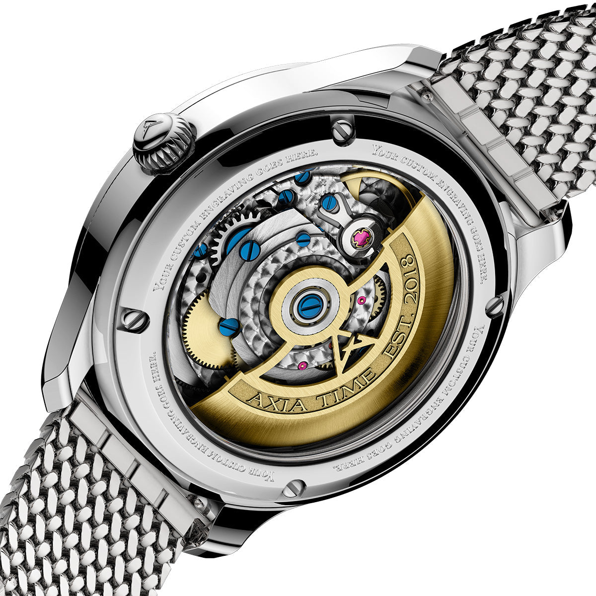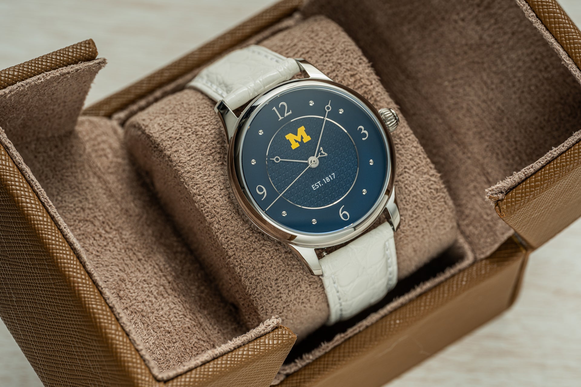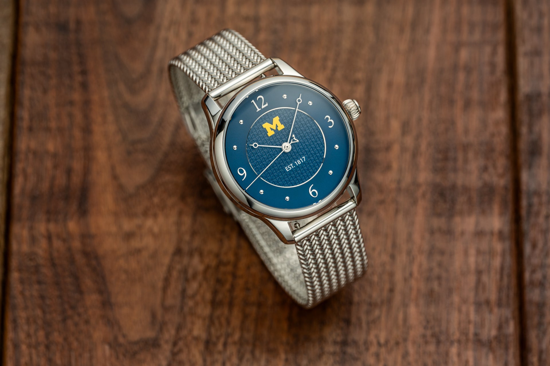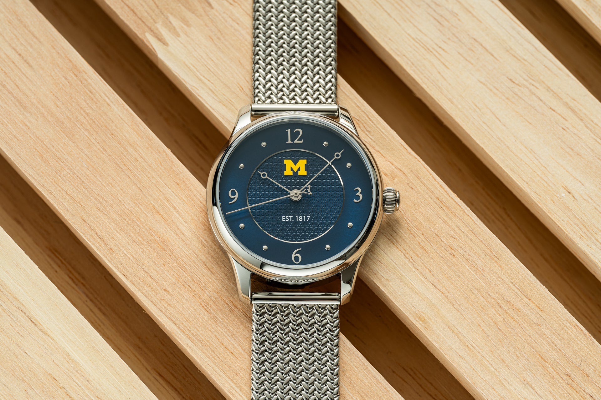 From the Greek word ΑΛΗΘΕΙΑ, meaning truth. This collection combines elegance and style in a polished 36 mm stainless steel case with a multi-tiered dial featuring a snail-brushed finish and the block "M" embossed in a repeating pattern. Diamond cut hands and applied polished indexes, and 3-hand movement complete this automatic (self-winding) timepiece.