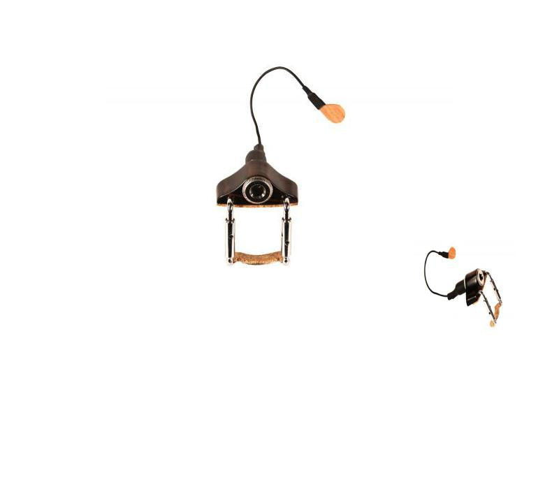 In brief: Piezo Violin/Viola Pickup with Low-profile Housing and Cork-lined Clamp.