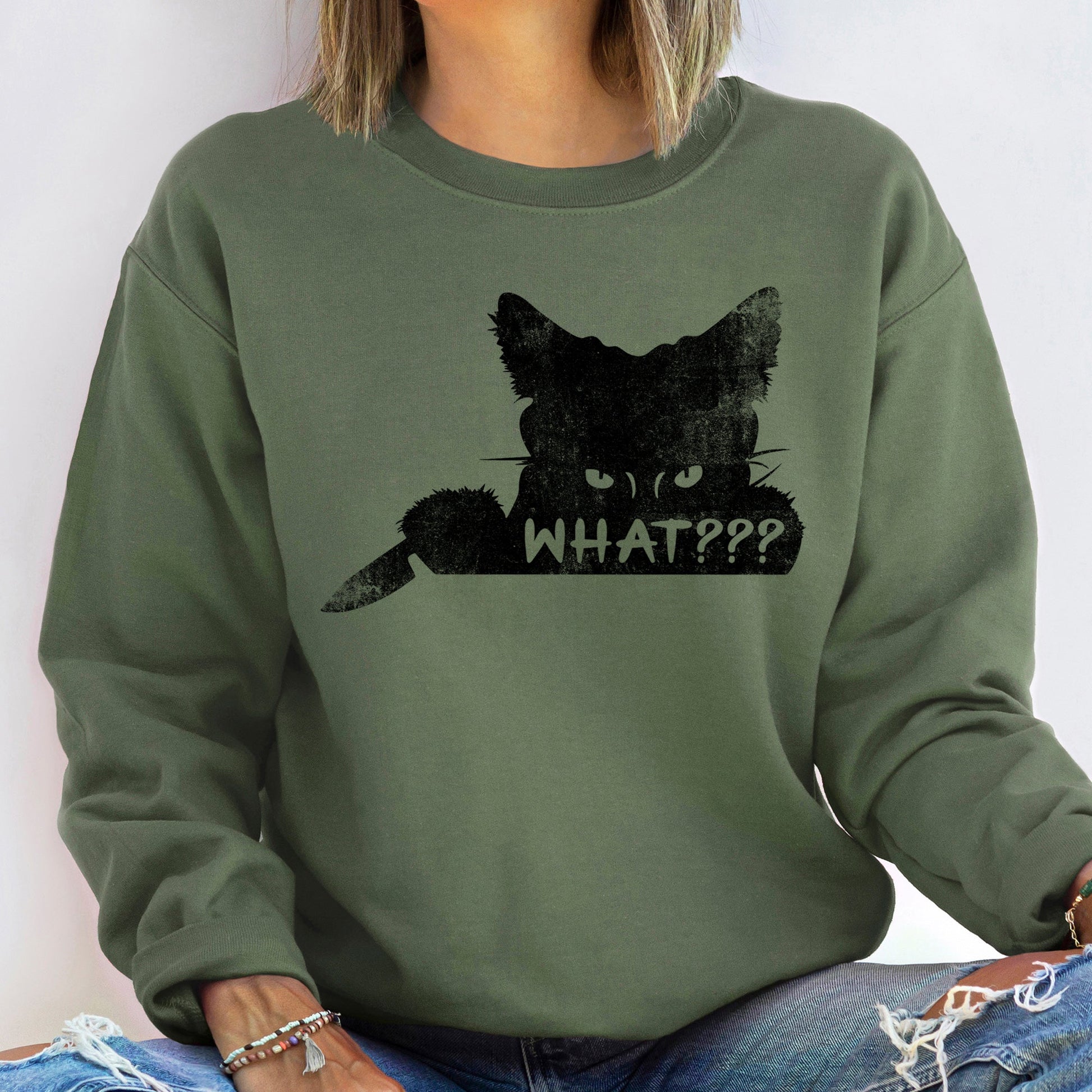 What??? Cat Halloween Sweatshirt Soft Fleece Cotton Polyester Blend