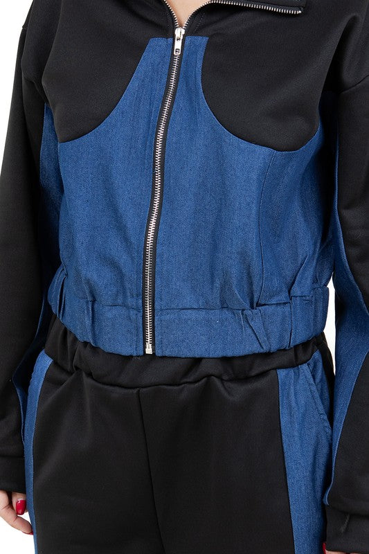 Sexy 2pcs set,front-zip closure, Ribbed cuffs, and hem, elasticized waist pant side pocket