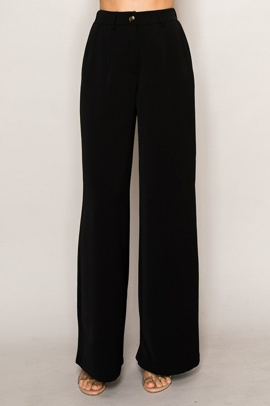 Women High Waist Wide Leg Pants Double Button Zipper Fly