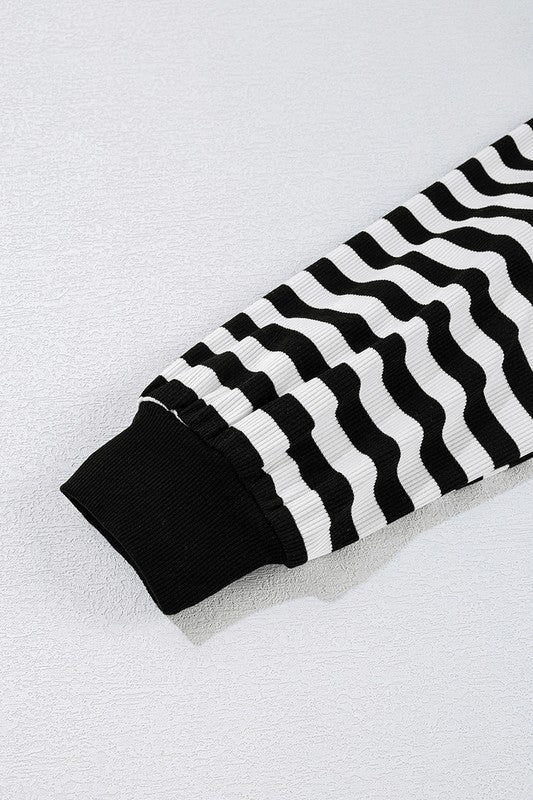 Women Stripe Crochet Back Buttoned V Neck Shirt