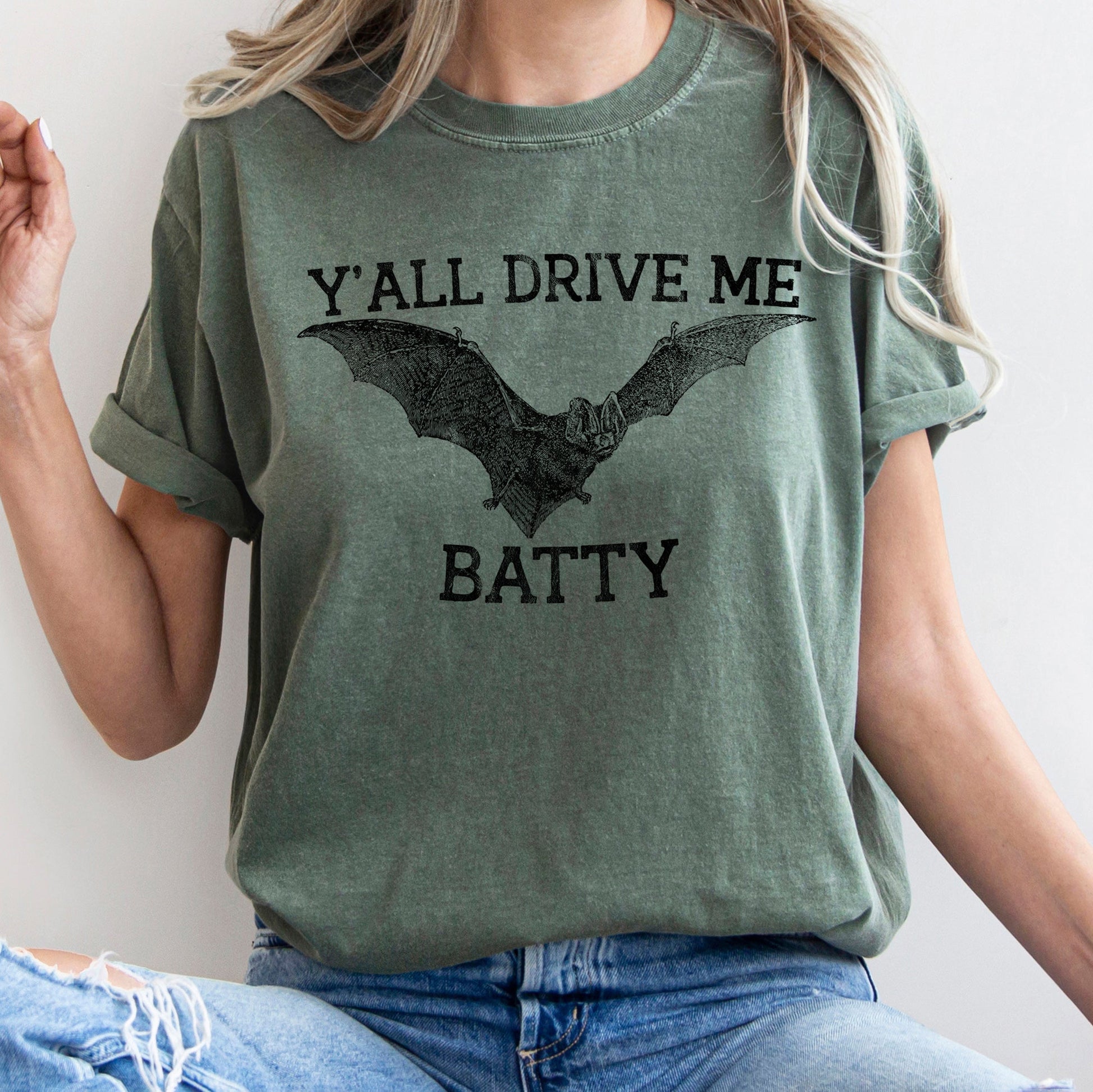 This Y'all Drive Me Batty Retro Halloween Comfort Colors T-shirt is not just a shirt; it's a statement. Perfect for pairing with jeans or layering under a blazer, it's versatile enough for any occasion. Embrace the spirit of Halloween while enjoying luxurious comfort. Order yours today and make a stylish impression this season!