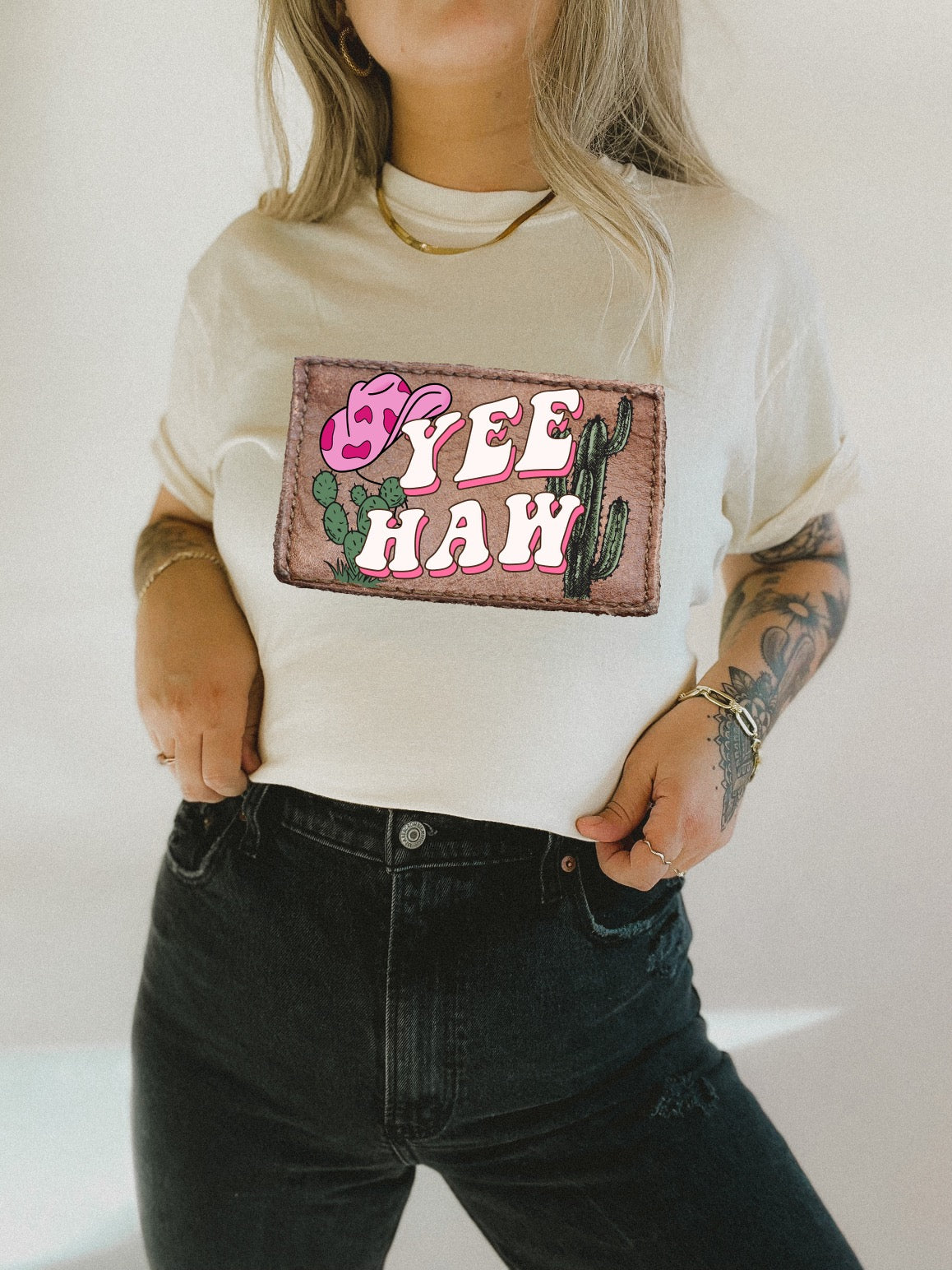 Get ready to wrangle in style with the Yee Haw Cactus tee! Made with ultimate comfort in mind, this shirt is available in Gildan or Comfort Color. Ride the fashion wave with this cool and comfortable choice. Yee haw!