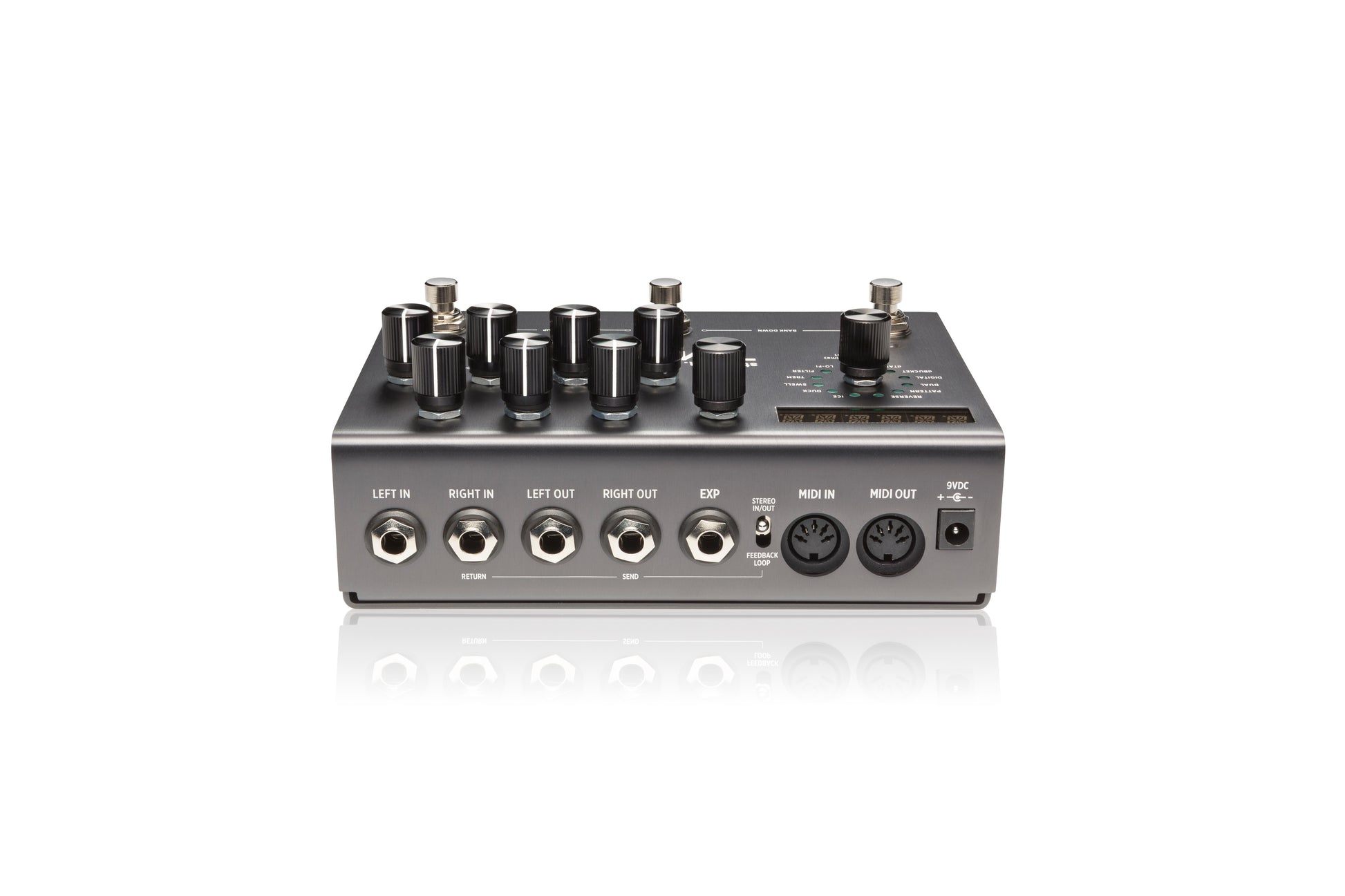 In brief: Digital Delay Pedal with 12 Sounds, 200 Presets, 30-second Stereo Looper, Stereo Ins/Outs, Expression Pedal Input, and MIDI In/Out with 9-volt Power Supply